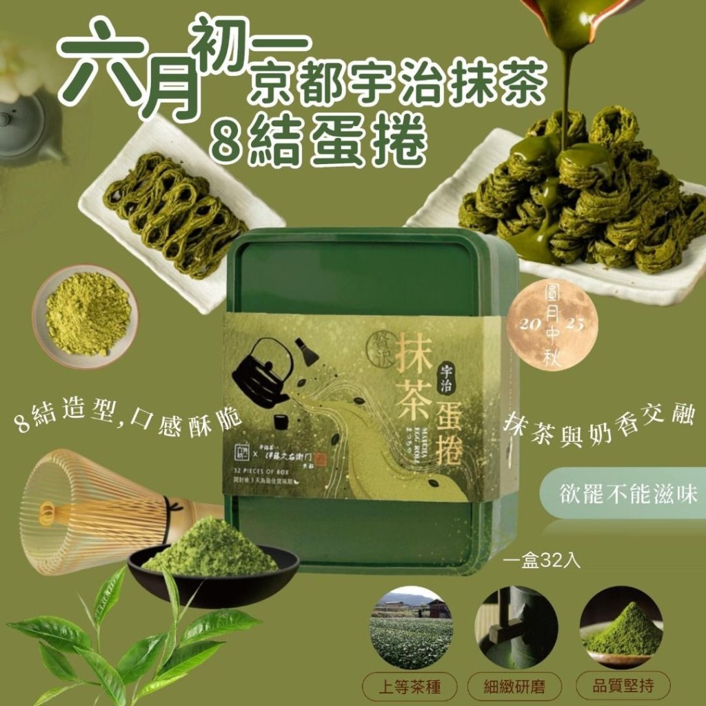 主頁 FD1859 六月初一 京都宇治抹茶8結蛋捲 32入 $109@1盒,3套或以上每套-$9