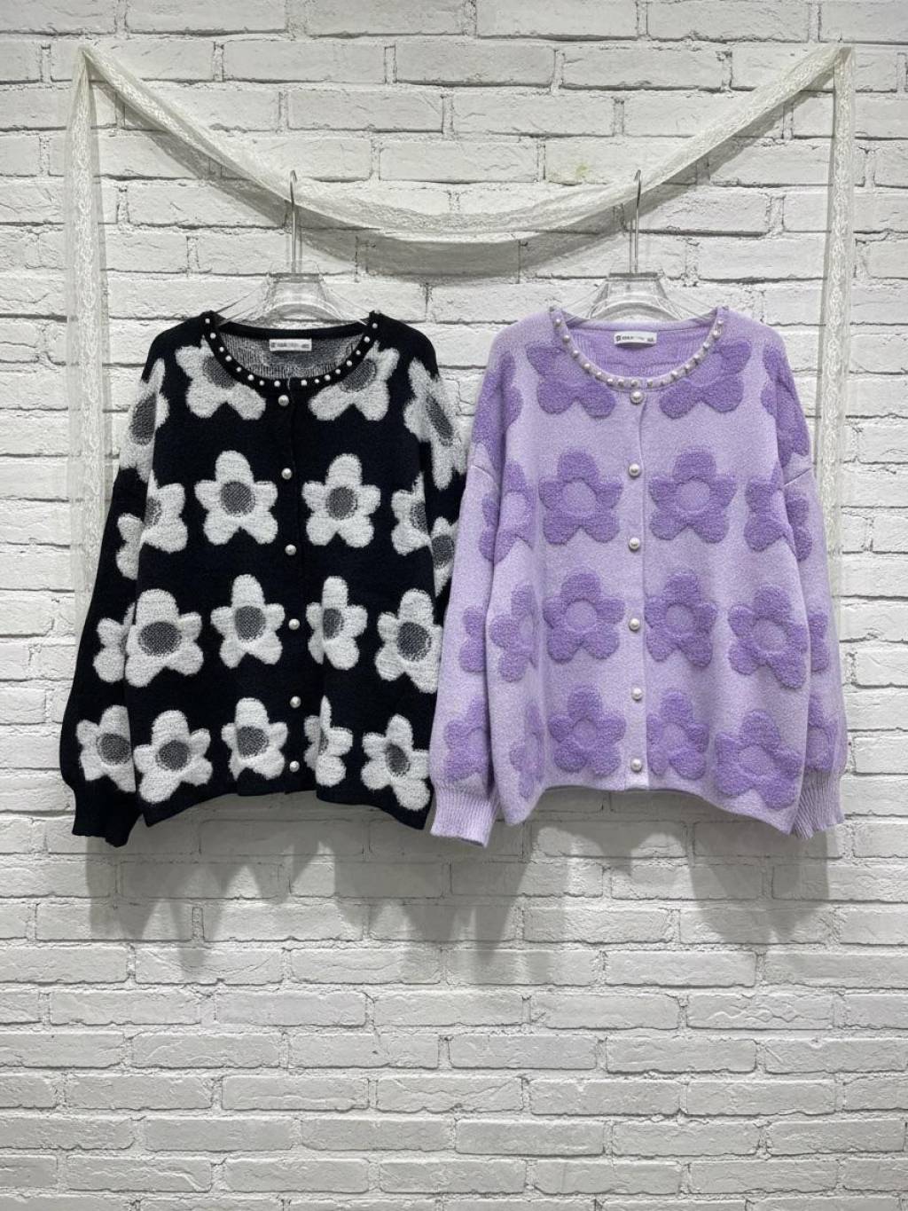 KF825 立體花珍珠小香風外套 長26吋、闊50吋、黑、紫、$199