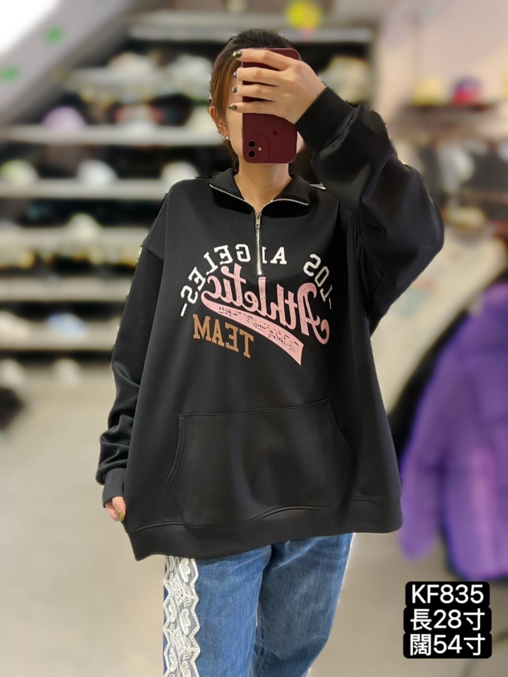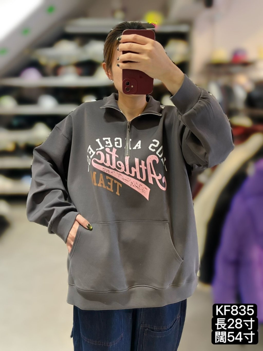 KF835 太空棉前拉鏈印字Top $169 長28寸、闊54寸