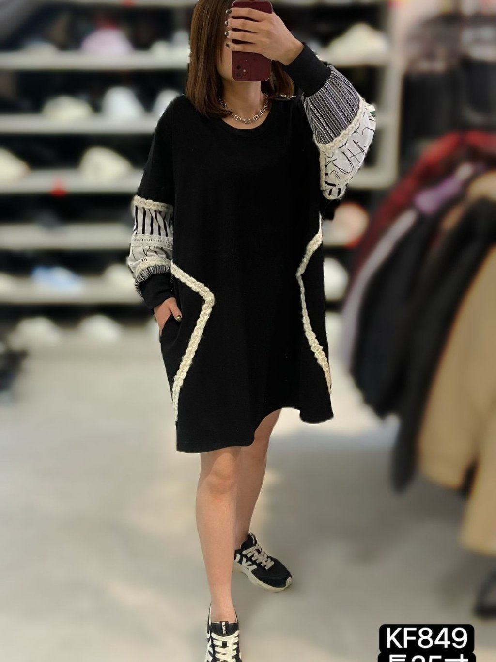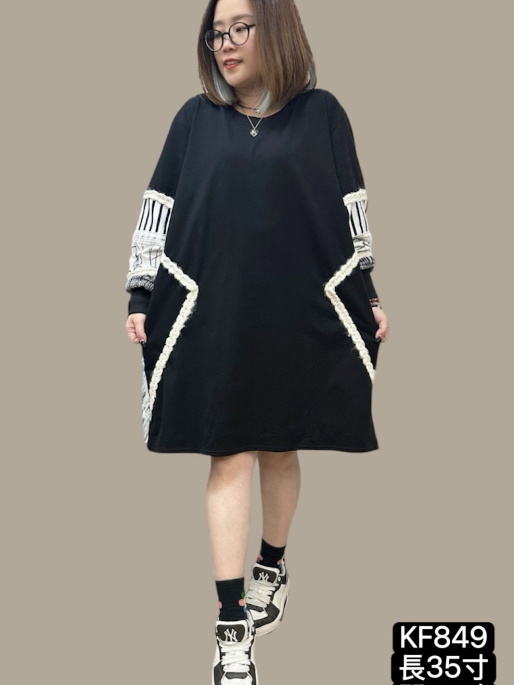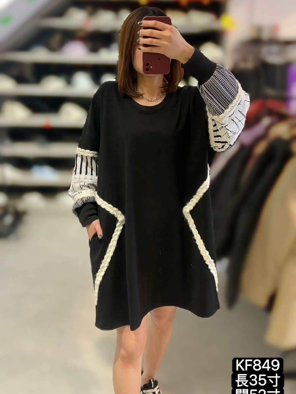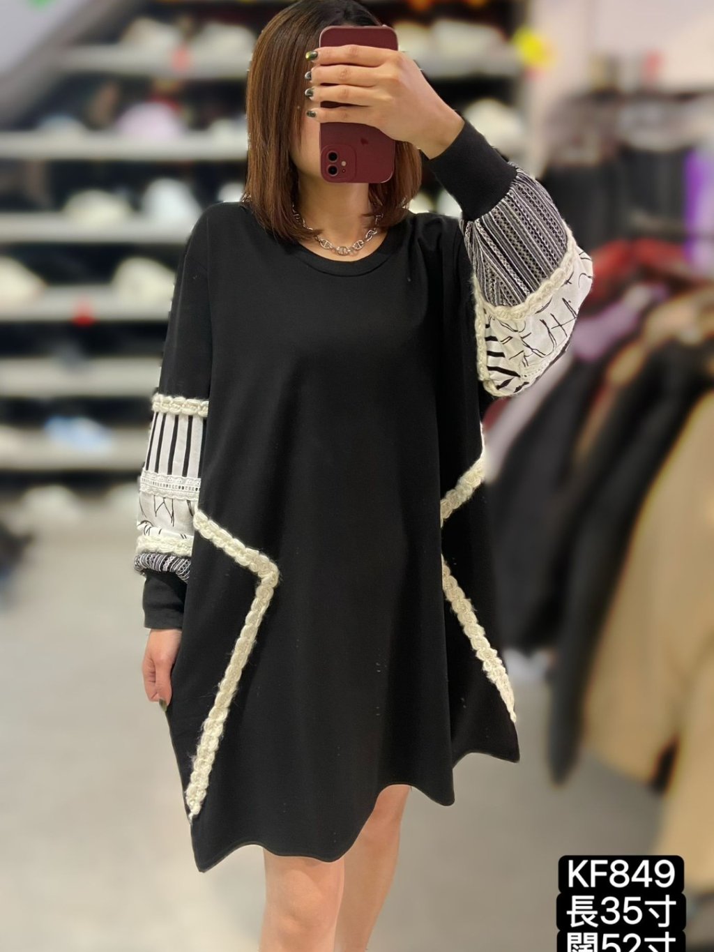 KF849 棉料手袖拼布OPS 長35寸、闊52寸 $199