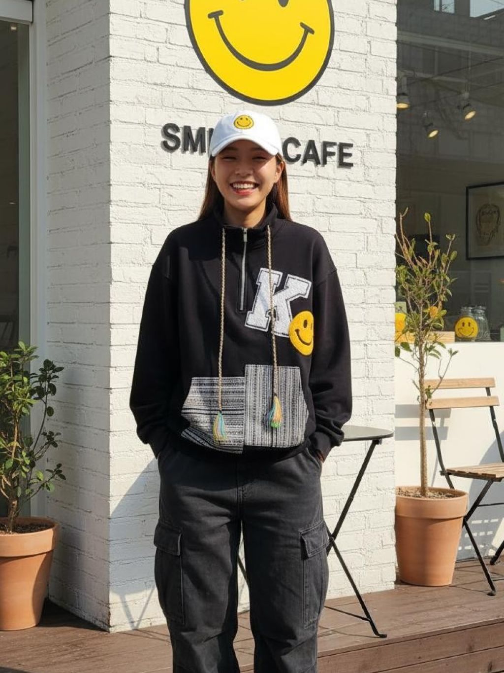 KF852 半拉鏈毛巾哈哈笑TOP 長28寸、闊50寸 $169