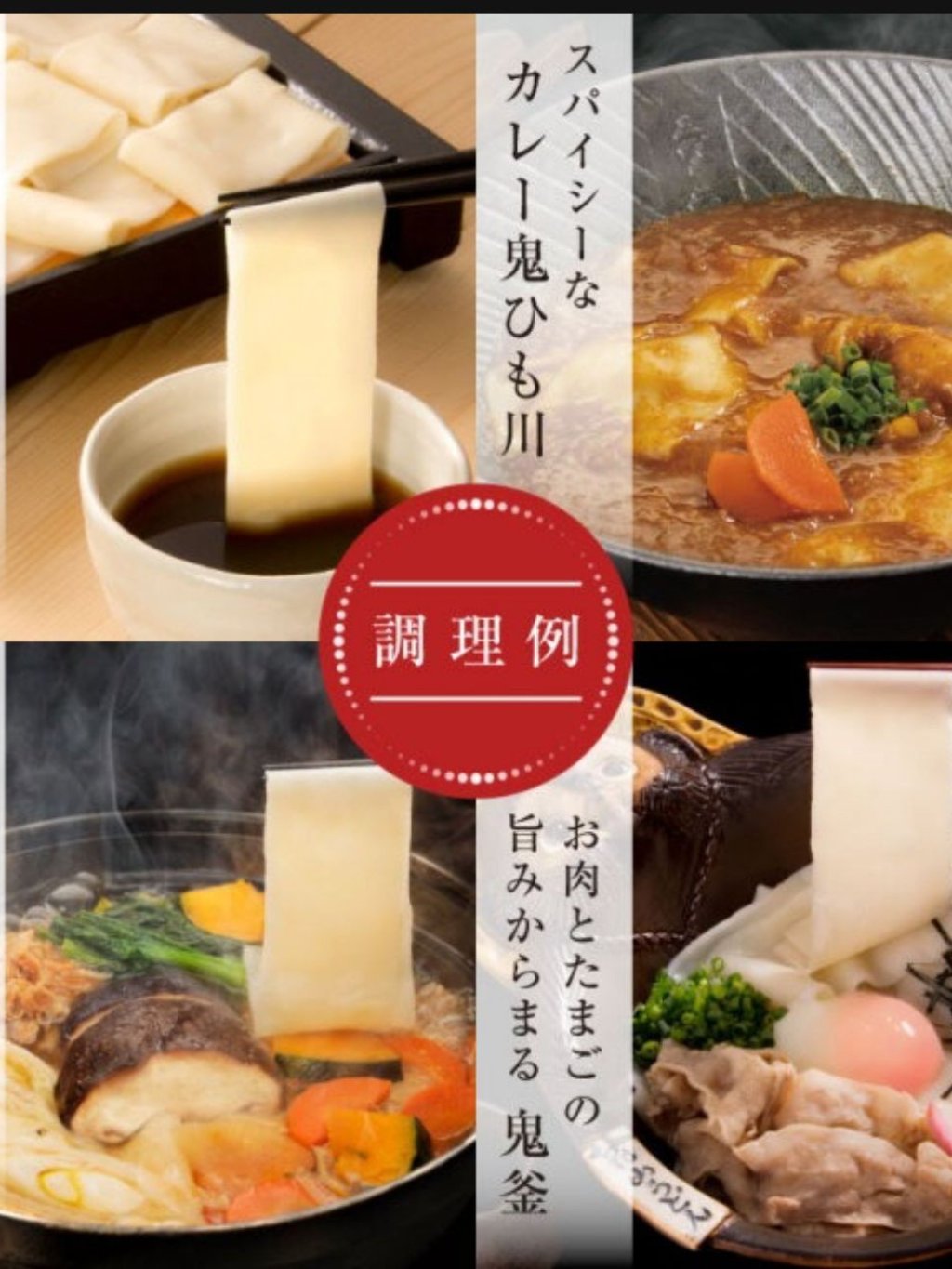 特徵:煮好後約闊5cm,是群馬當地的闊麵紐川烏冬中最闊的一種,有著煙靭滑溜的口感。