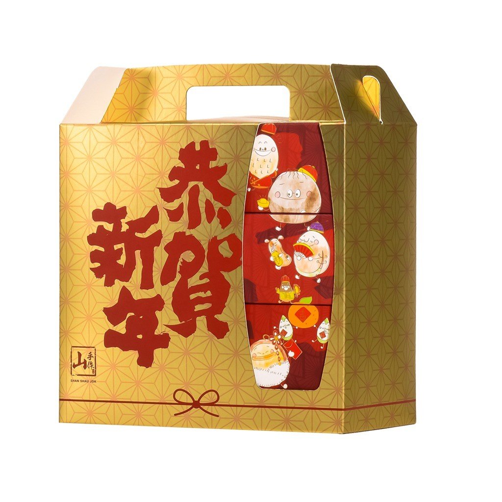 堅果酥糖賀年版每盒只得150克又豈能滿足大家蠢蠢欲動的味蕾,山手作在香港自設廠房製造,美味,健康,衛生已為你準備好份量十足的新春限定禮盒!由4盒堅果酥糖賀年版組成黃金組合,班底夠耀目,禮盒包裝更是名符其實的金光閃閃,大「金磚」外形保證人見人愛,財神速速來!