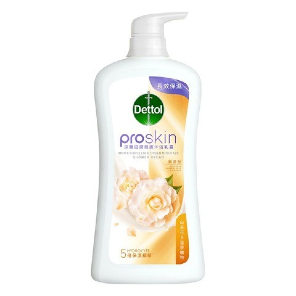 滴露 proskin 沐浴乳霜 白茶花與溫泉礦物淡香沐浴乳霜含深層滋潤Moisture Complex System, 有效溫和潔淨,同時肌膚保持水潤幼滑,用後不殘留黏膩感。