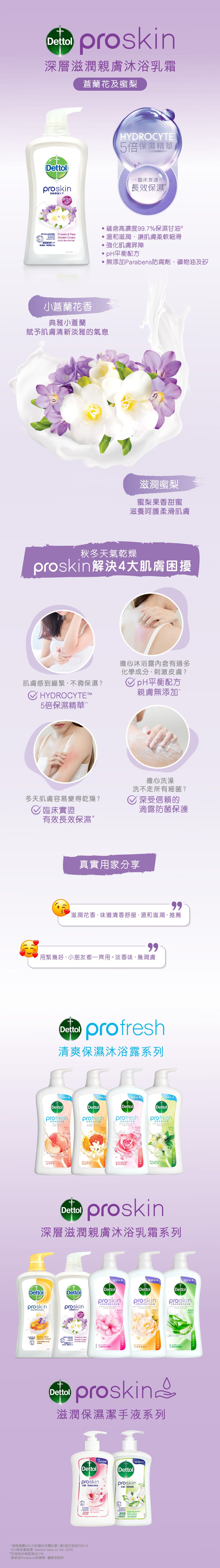 深層滋潤成份,有效鎖緊肌膚水份及維持天然保護層,令肌膚倍感柔軟幼滑。帶來滋潤、花香潔淨的沐浴體驗,同時擁有深受信賴的滴露防菌保護。
