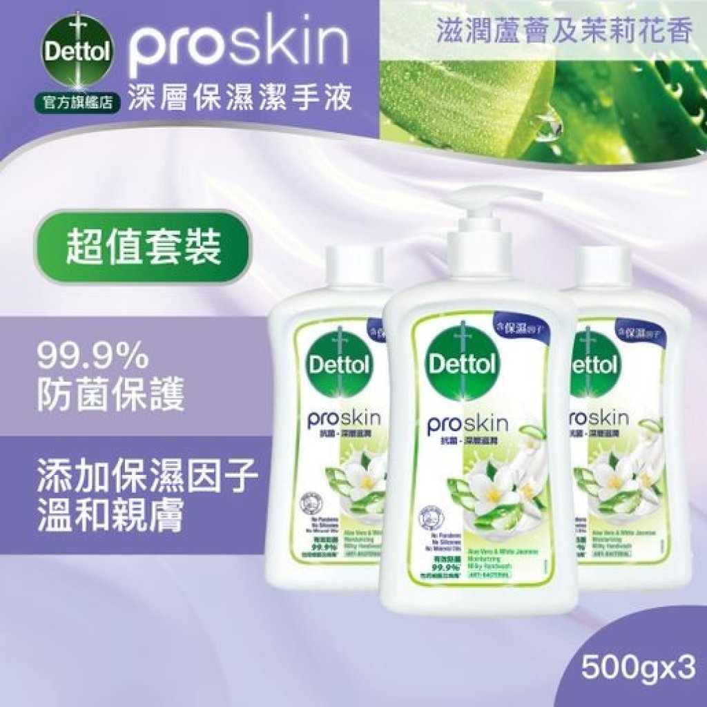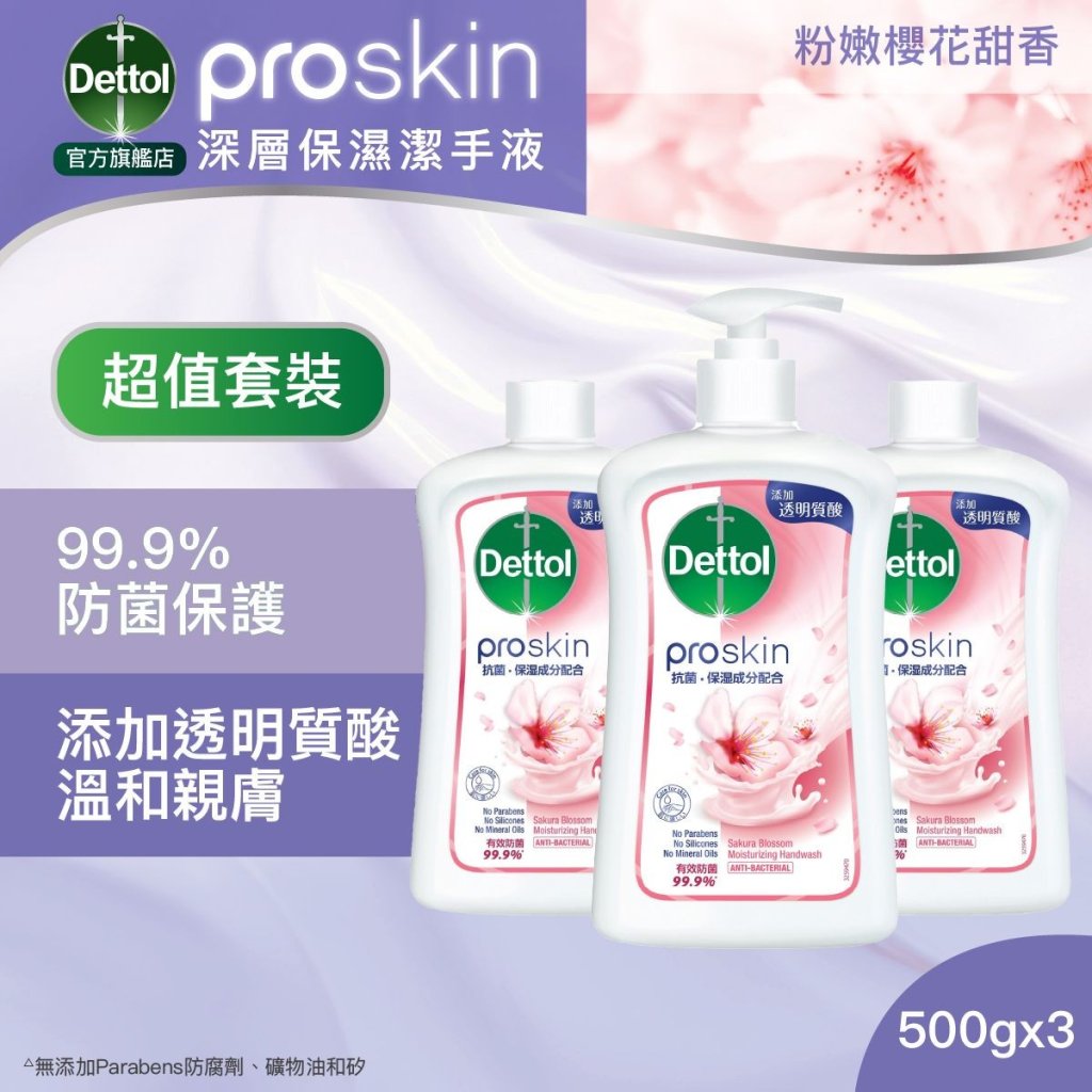 LG829 Dettol 滴露 - proskin 深層保濕洗手液500g*3支優惠裝 $70@1套 (滋潤蘆薈及茉莉花香/粉嫩櫻花甜香)