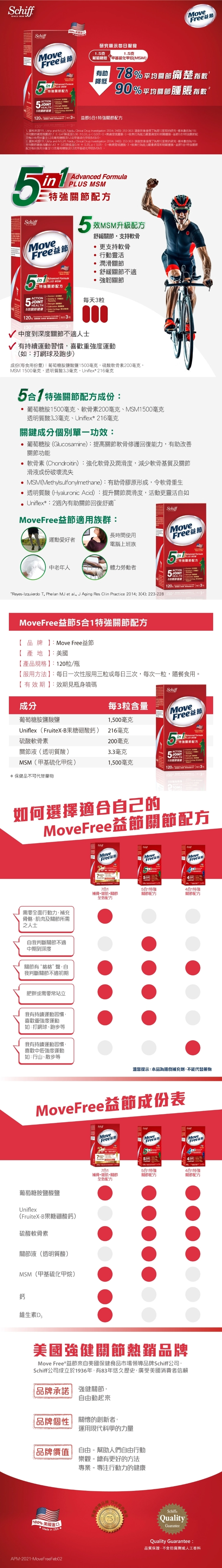 No.1857 MoveFree 葡萄糖胺軟骨素再升級添加MSM - 5合1特強關節配方(120粒,每日1次,每次3粒) $270@1 ,$720@3