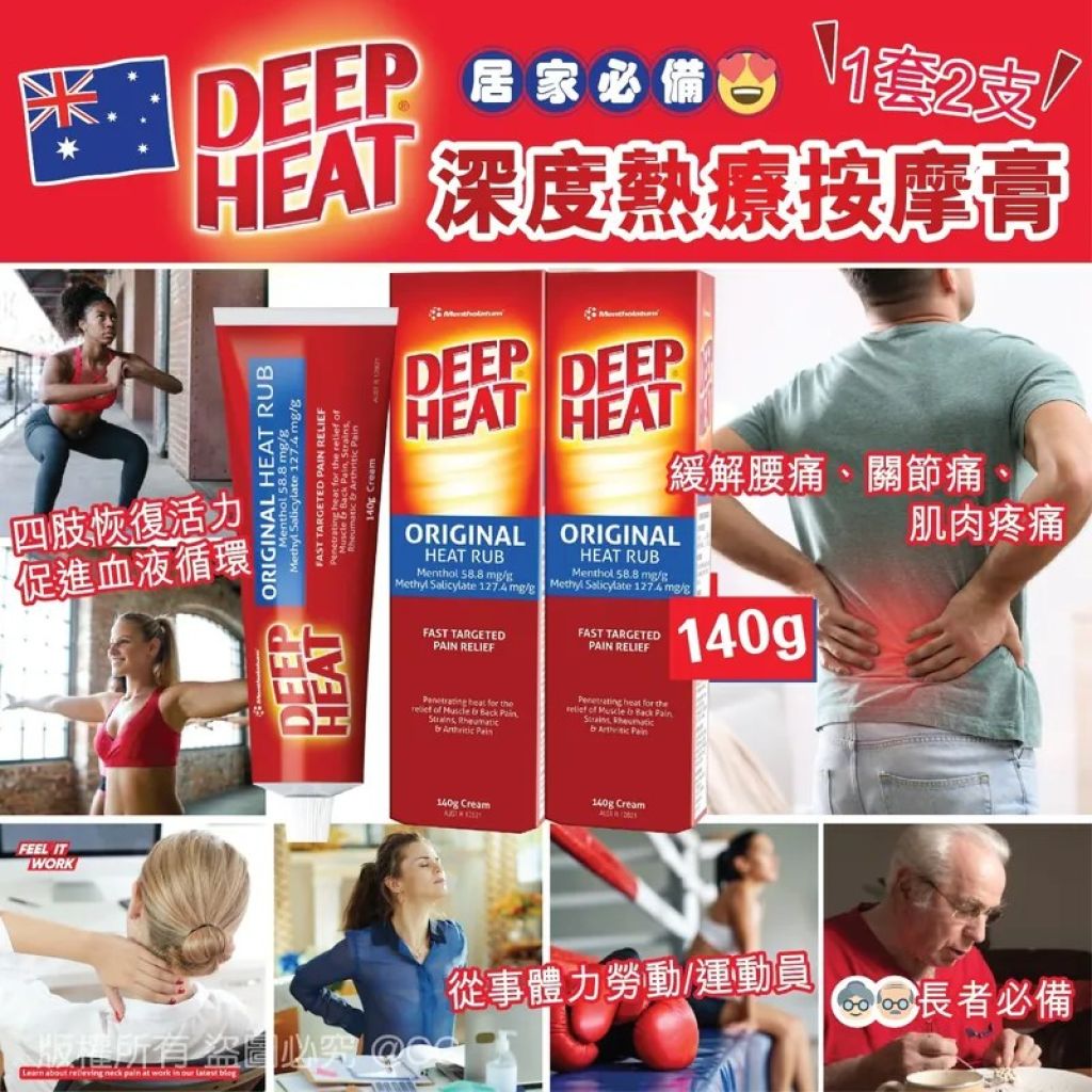 ✨澳洲 Deep Heat 深度熱療按摩膏 140g (1組2支)✨