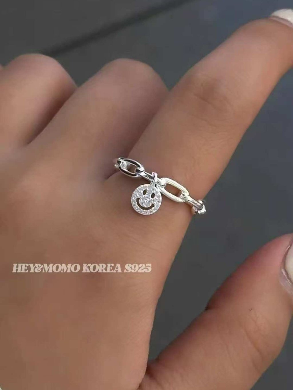 主頁 HM505 韓國 🇰🇷 925銀 別針 滿鑽笑臉戒指 $219