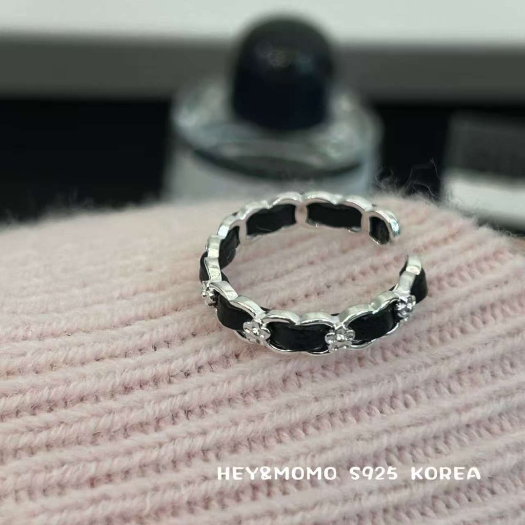 HM512 韓國 🇰🇷 925銀 小香風皮革山茶花戒指 $169