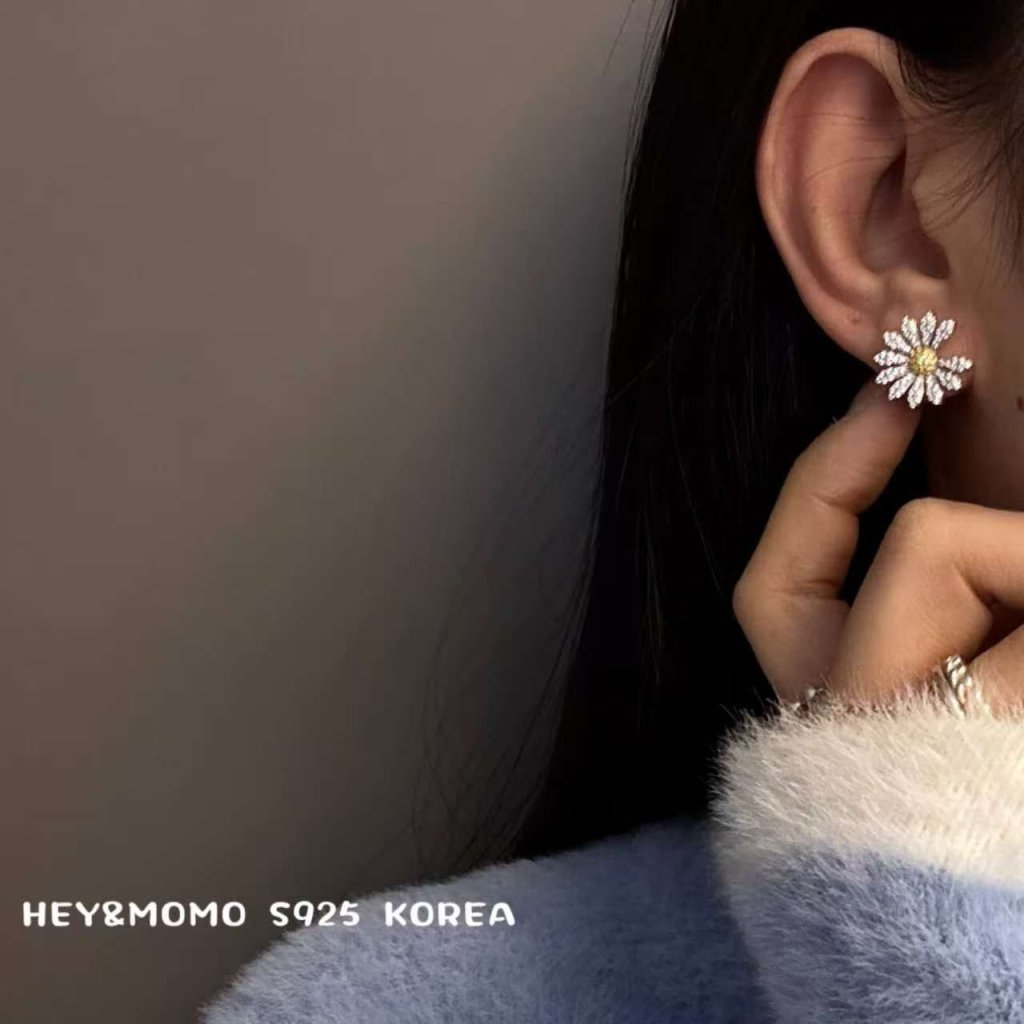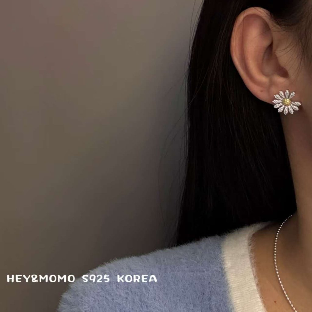 HM520 韓國 🇰🇷 925銀 權志龍同款 爆閃滿鑽小雛菊耳釘 $429