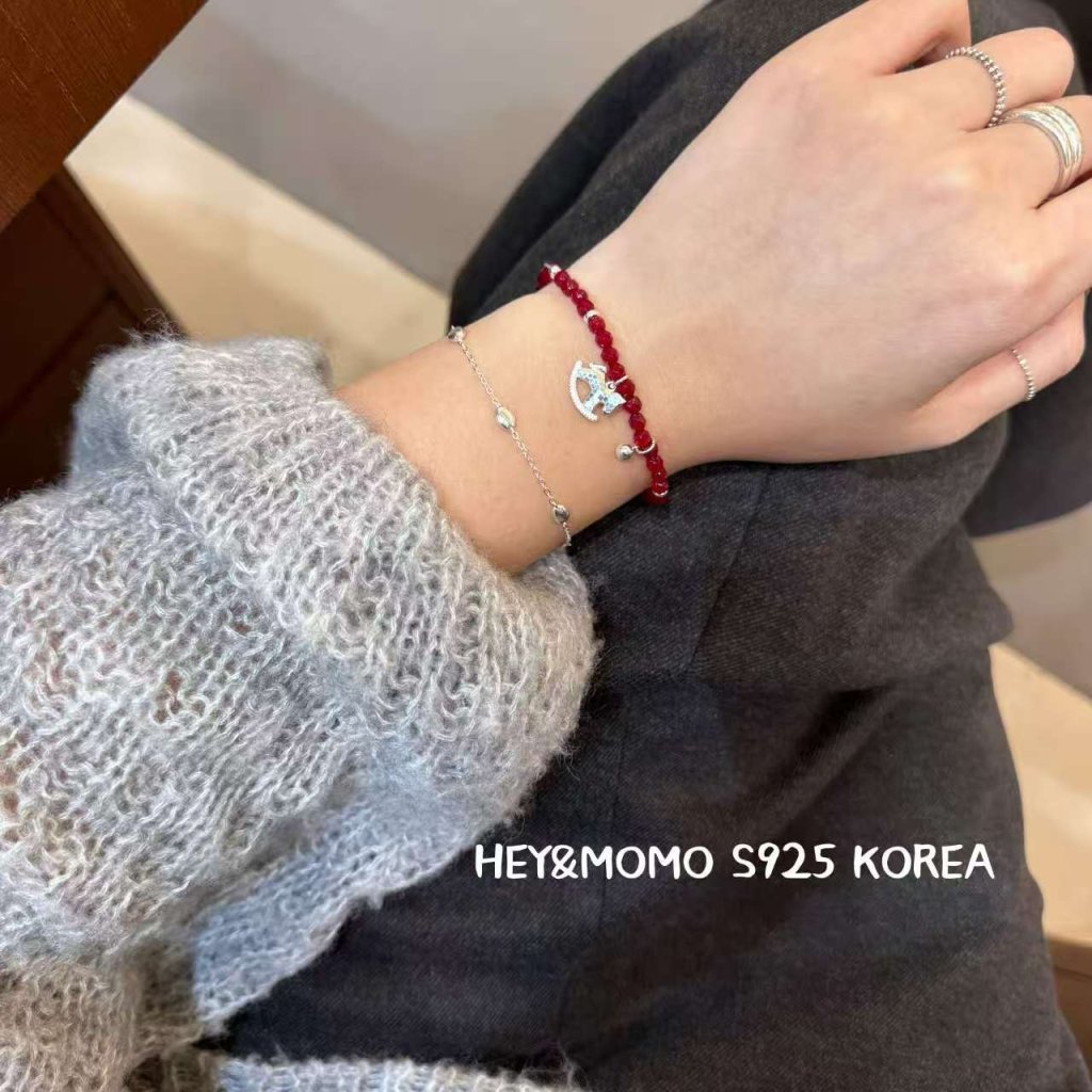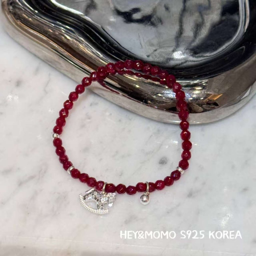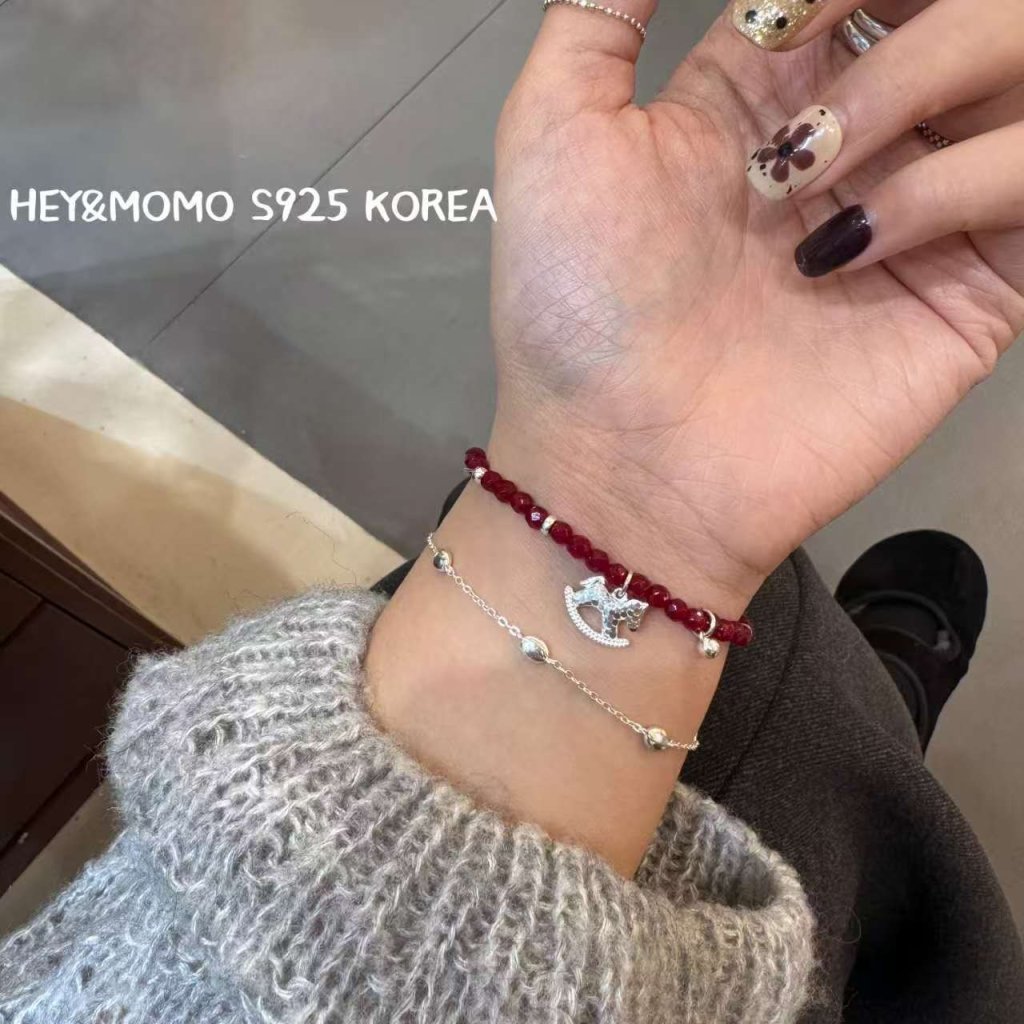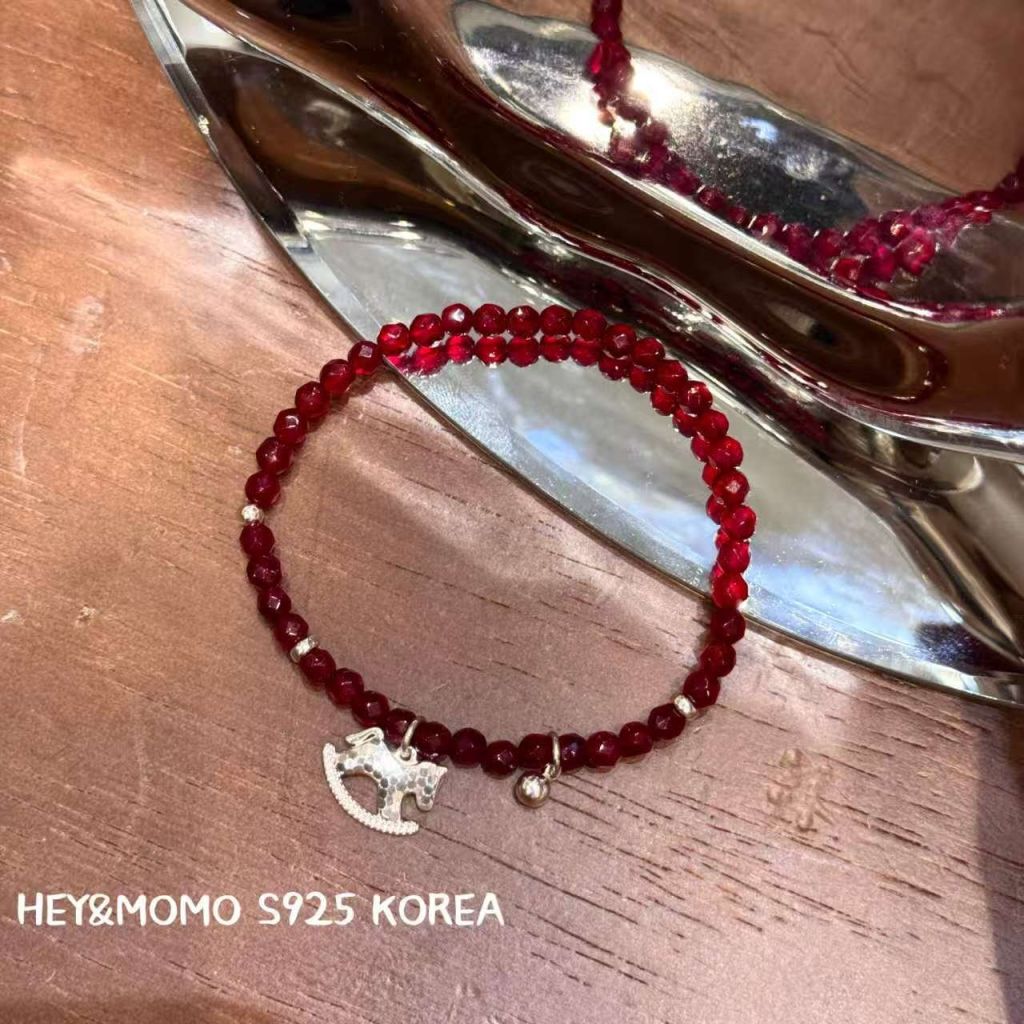 主頁 HM523 韓國 🇰🇷 925銀 獨家 石榴石 碎冰冰小馬手鏈 $199