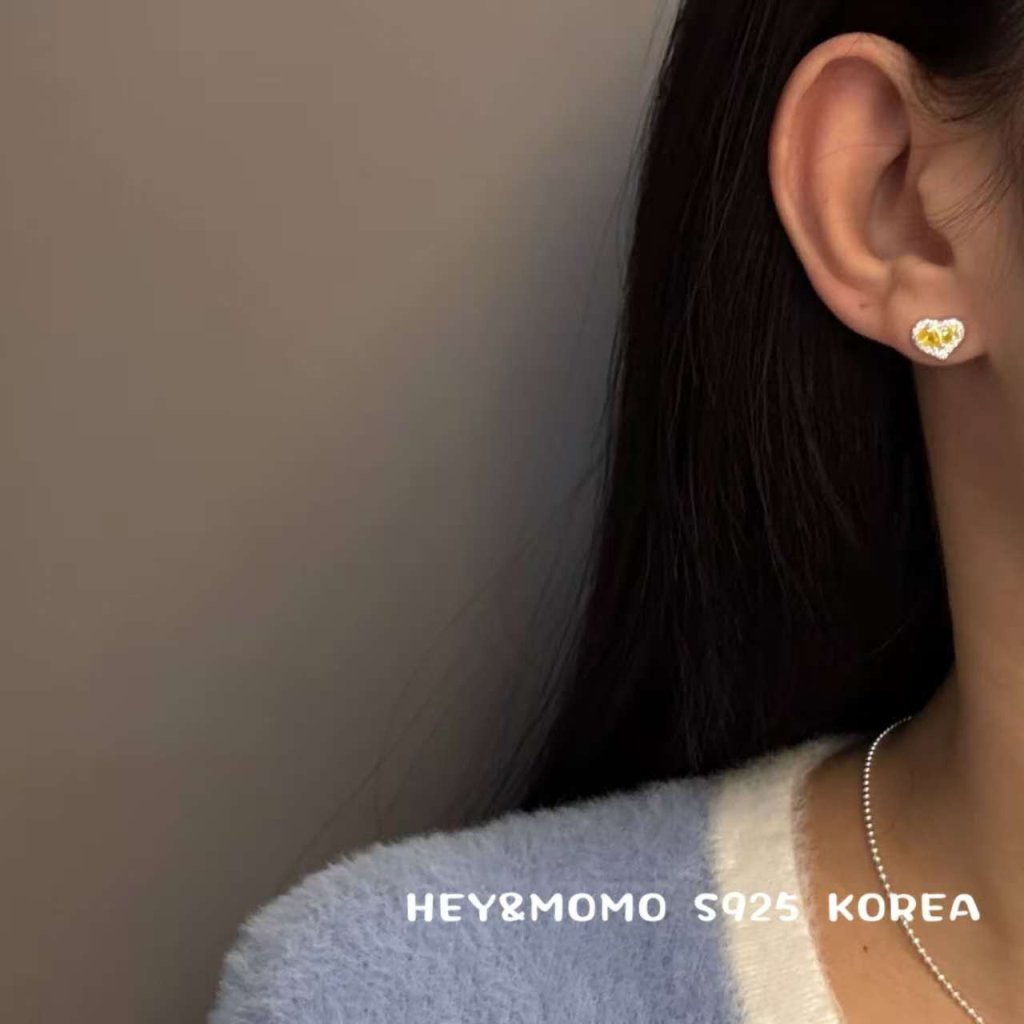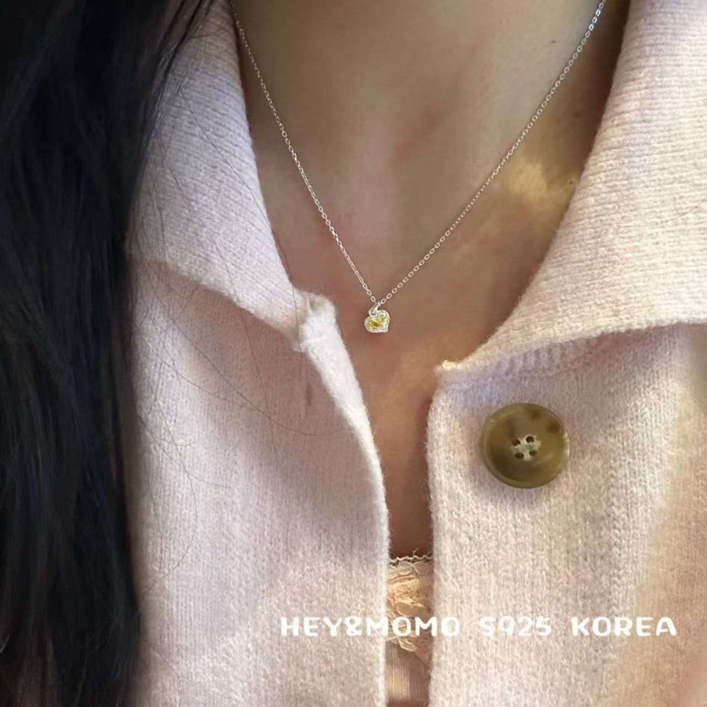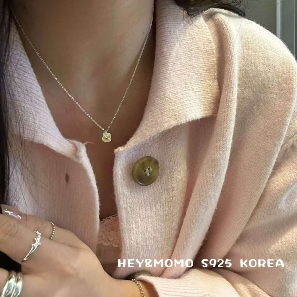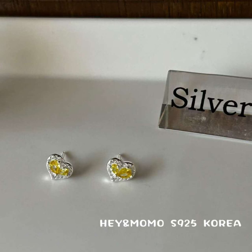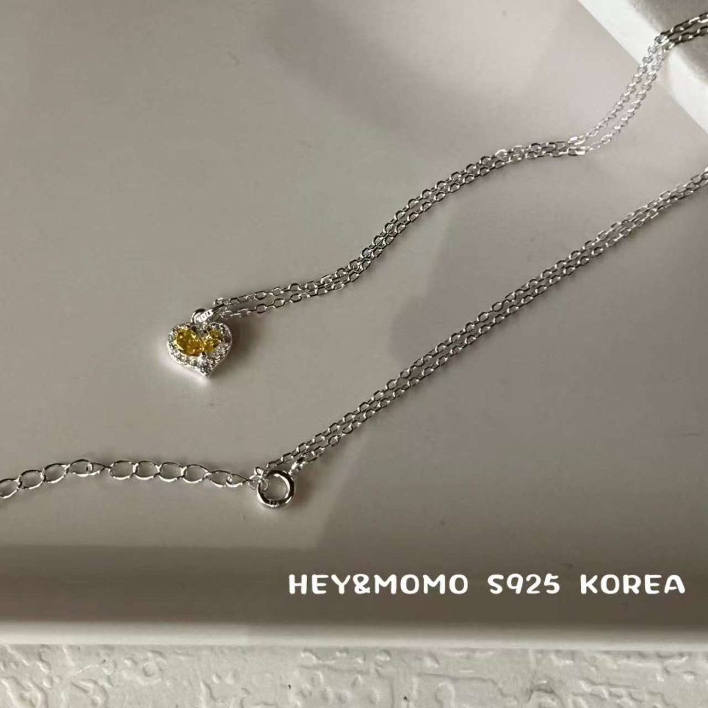 HM554 韓國 🇰🇷 925銀 黃色愛心水鑽 項鏈$219 /耳釘$149