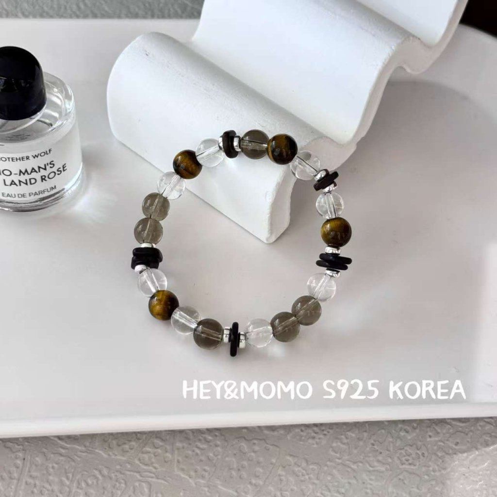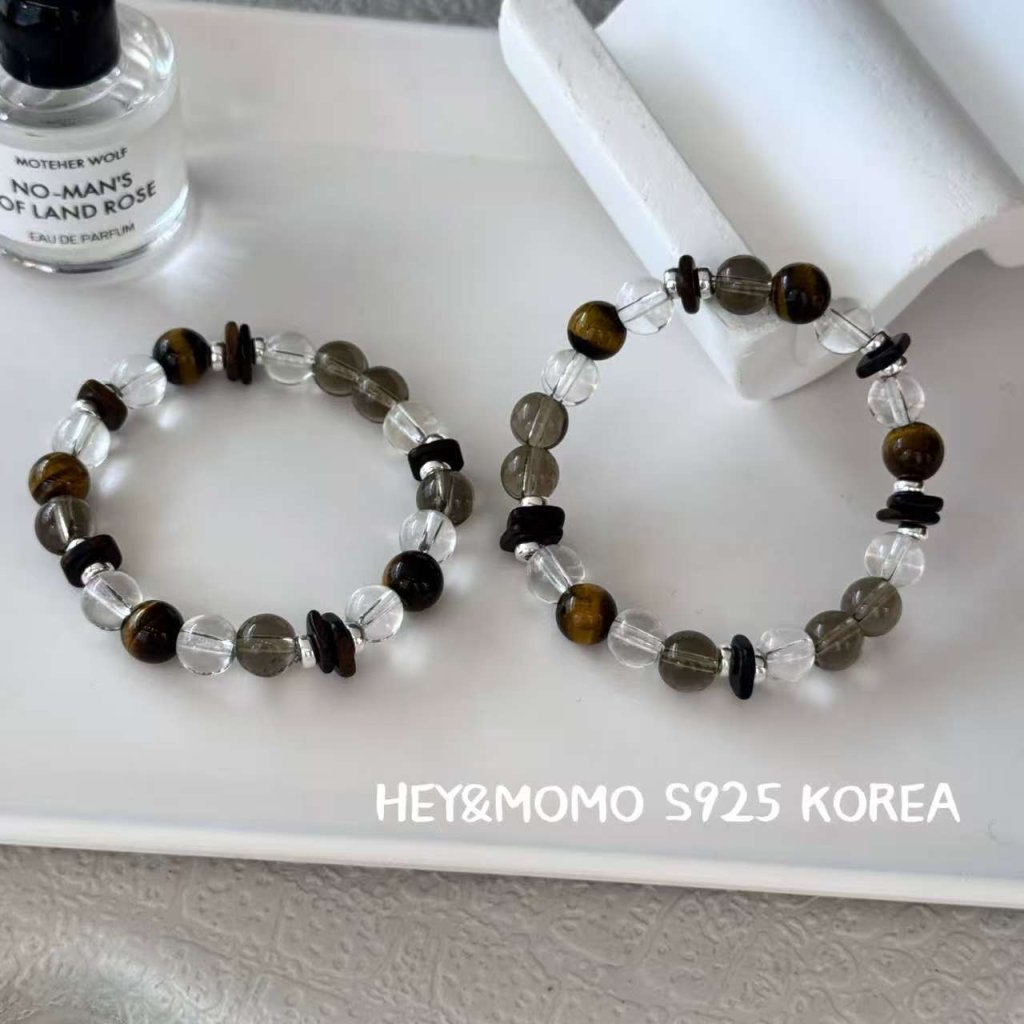 HM562 韓國 🇰🇷 925銀 茶晶 白水晶沉香手鏈 S/M/L $169
