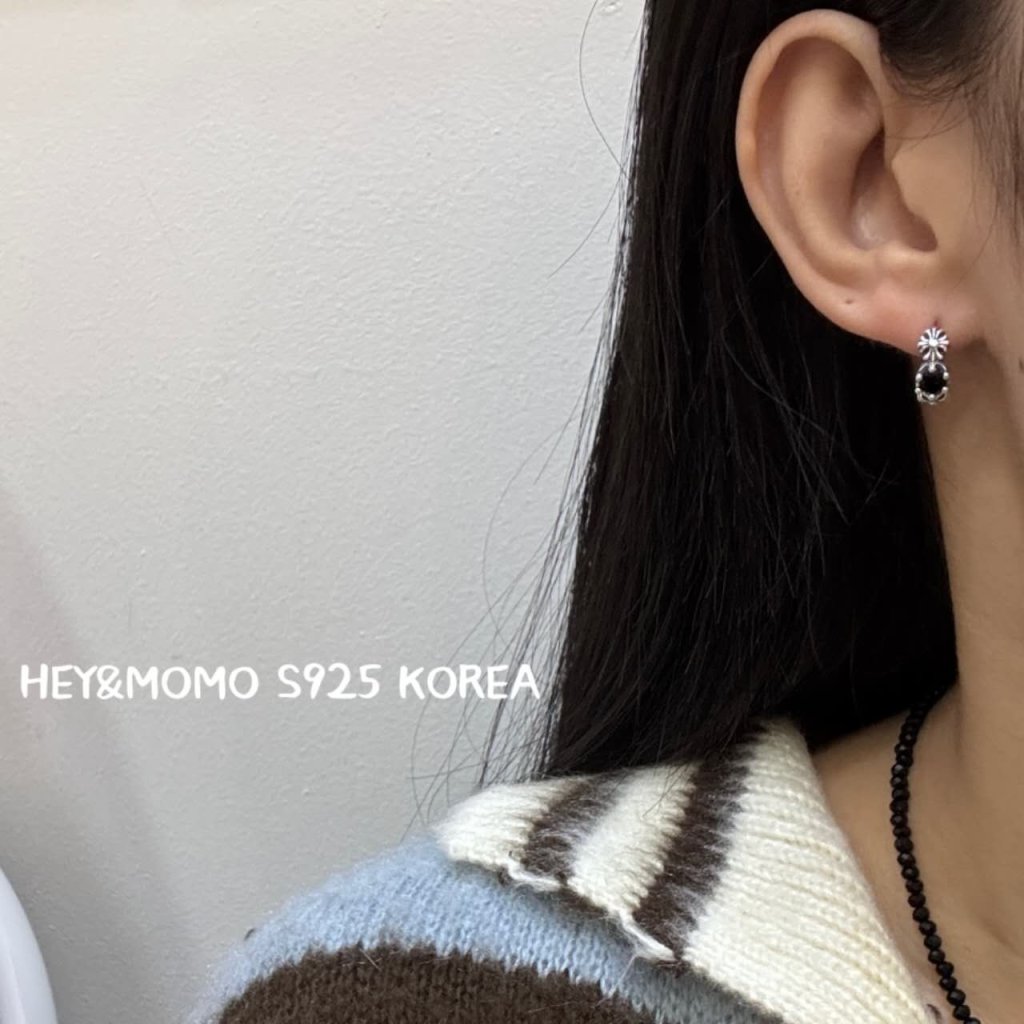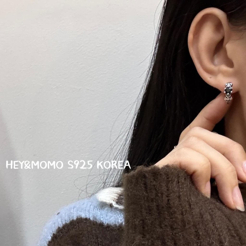 HM565 韓國 🇰🇷 925銀 克羅心耳圈 黑/綠/炫彩 $219
