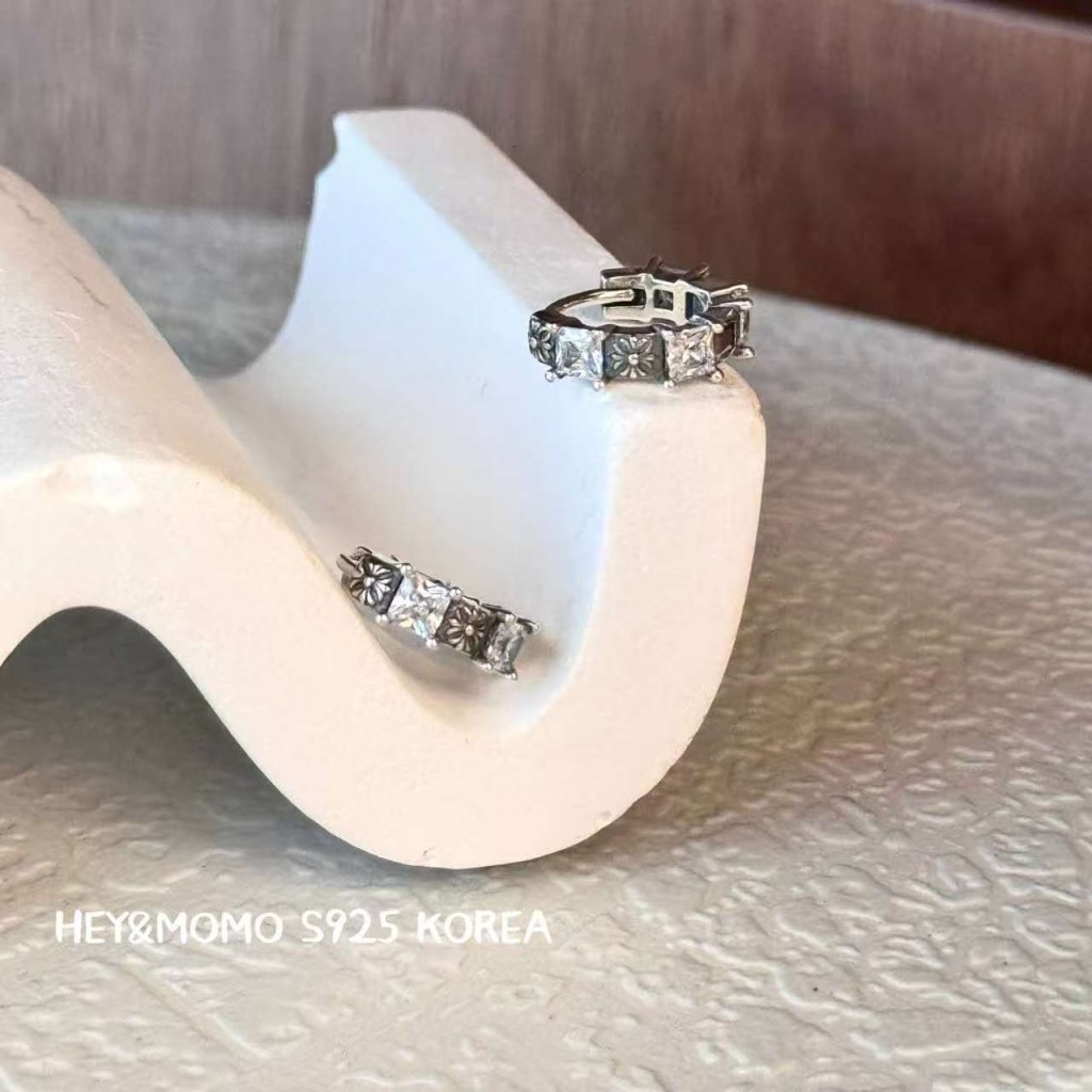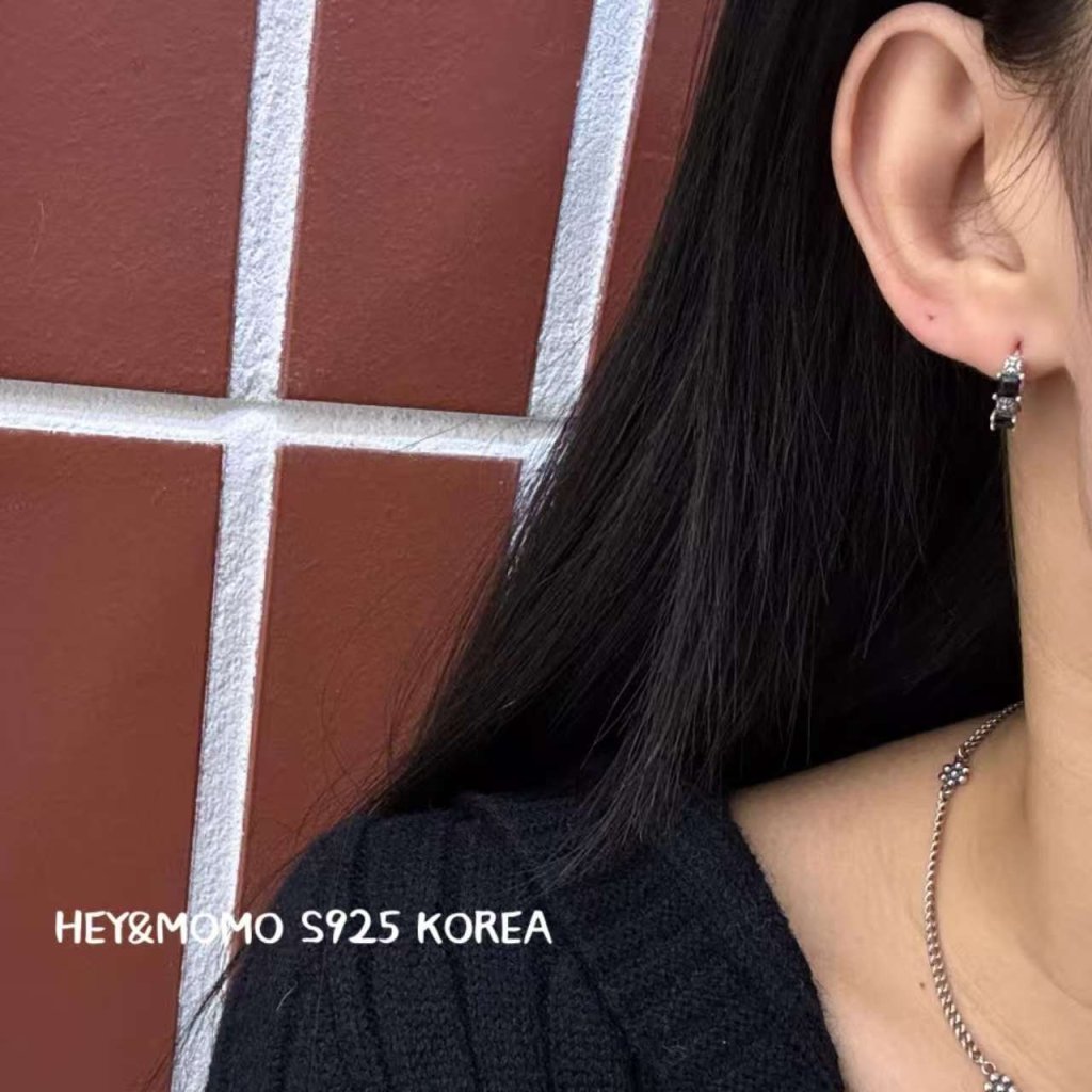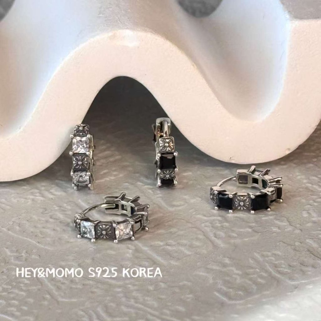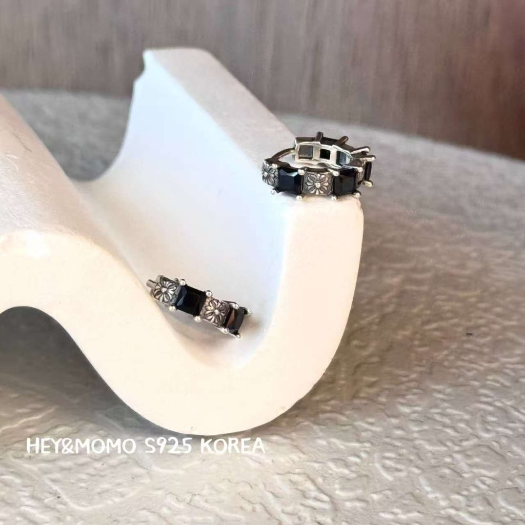 主頁 HM566 韓國 🇰🇷 925銀 克羅心十字花耳圈 黑鑽/白鑽 $209