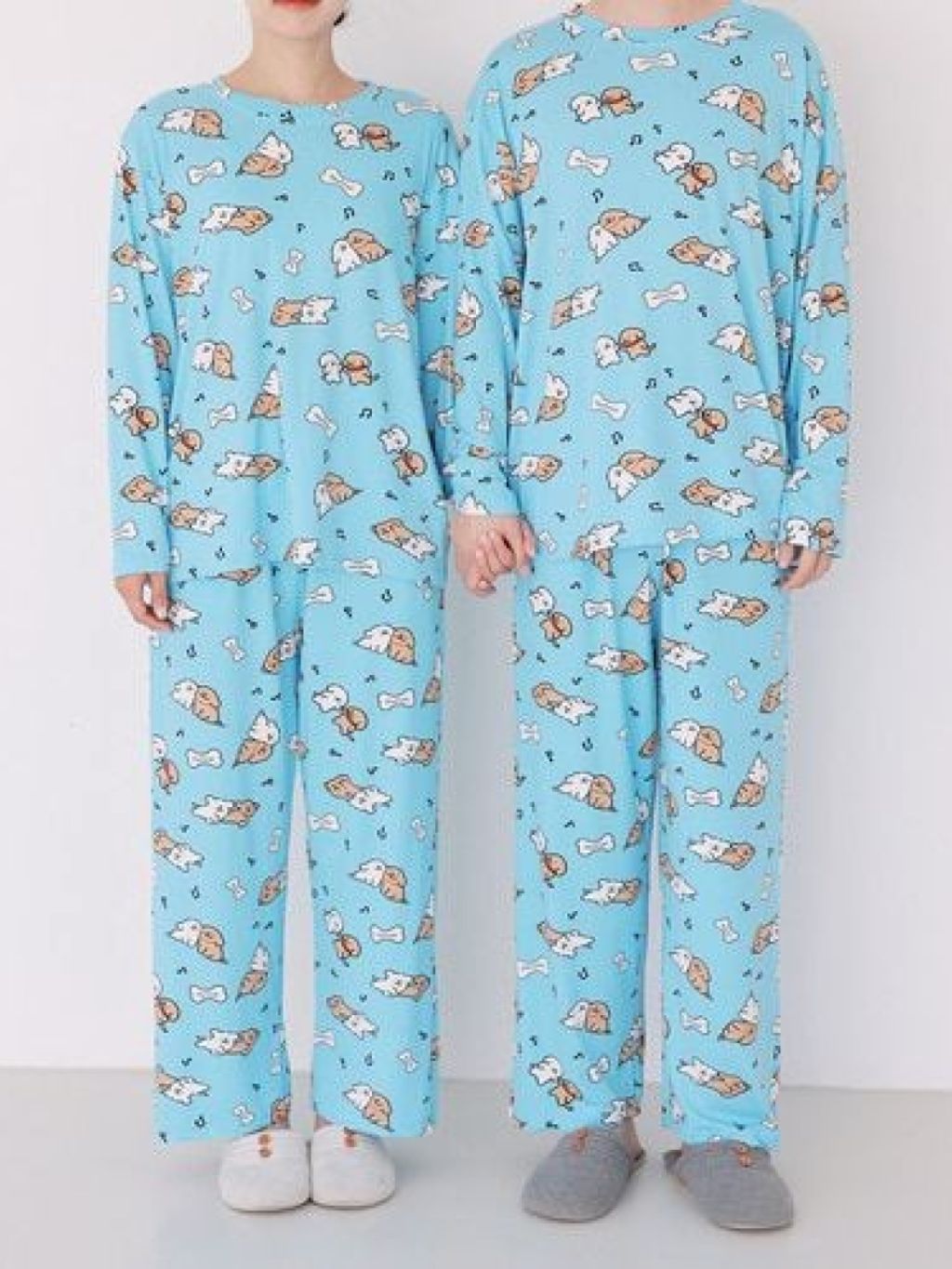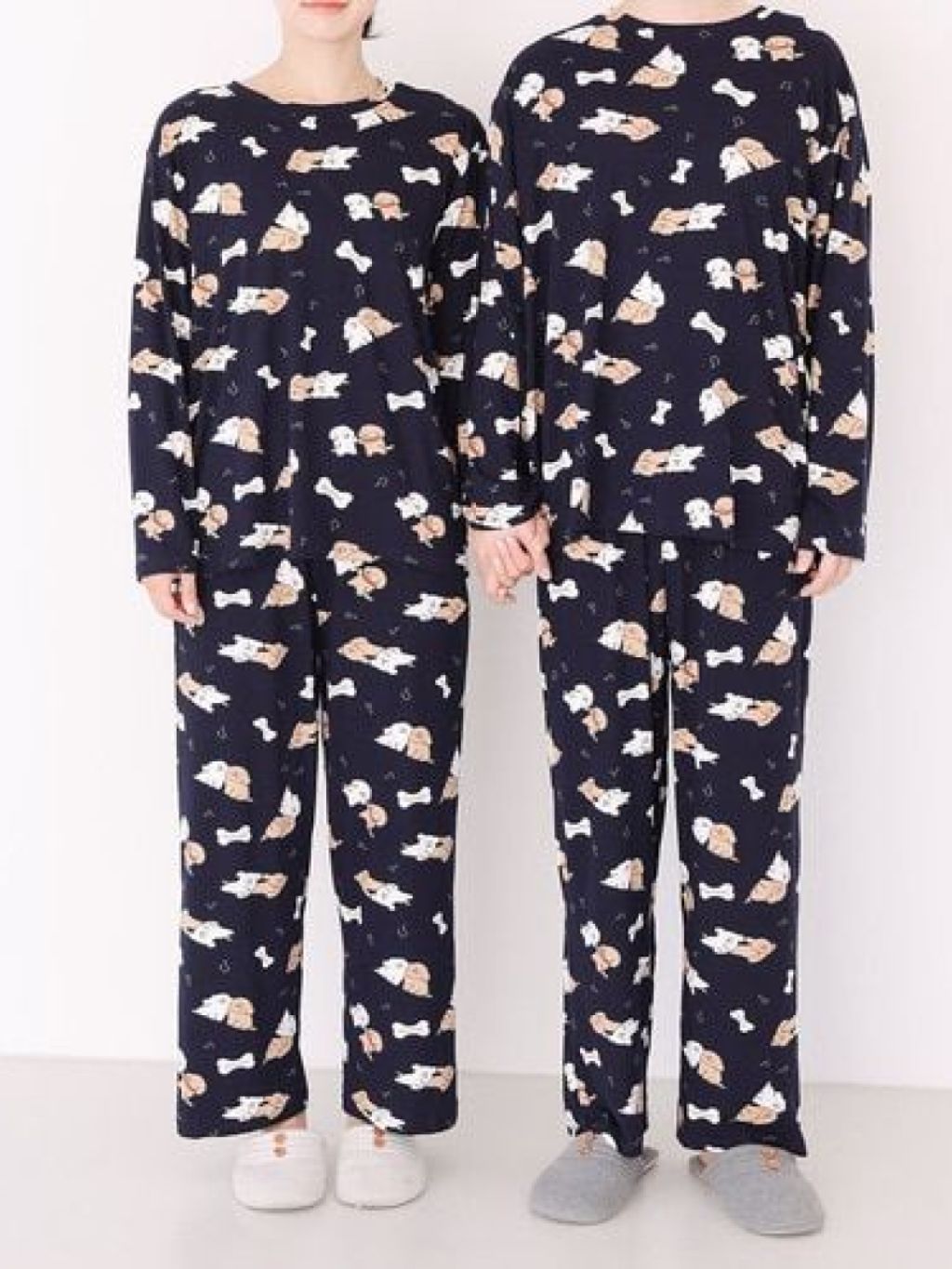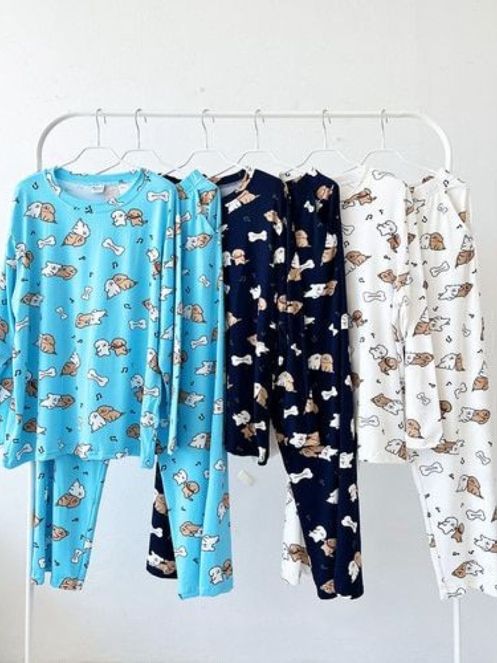 WY118 狗仔滿版莫代爾棉料長袖睡衣套裝 $139 深藍、淺藍、白 F、XL