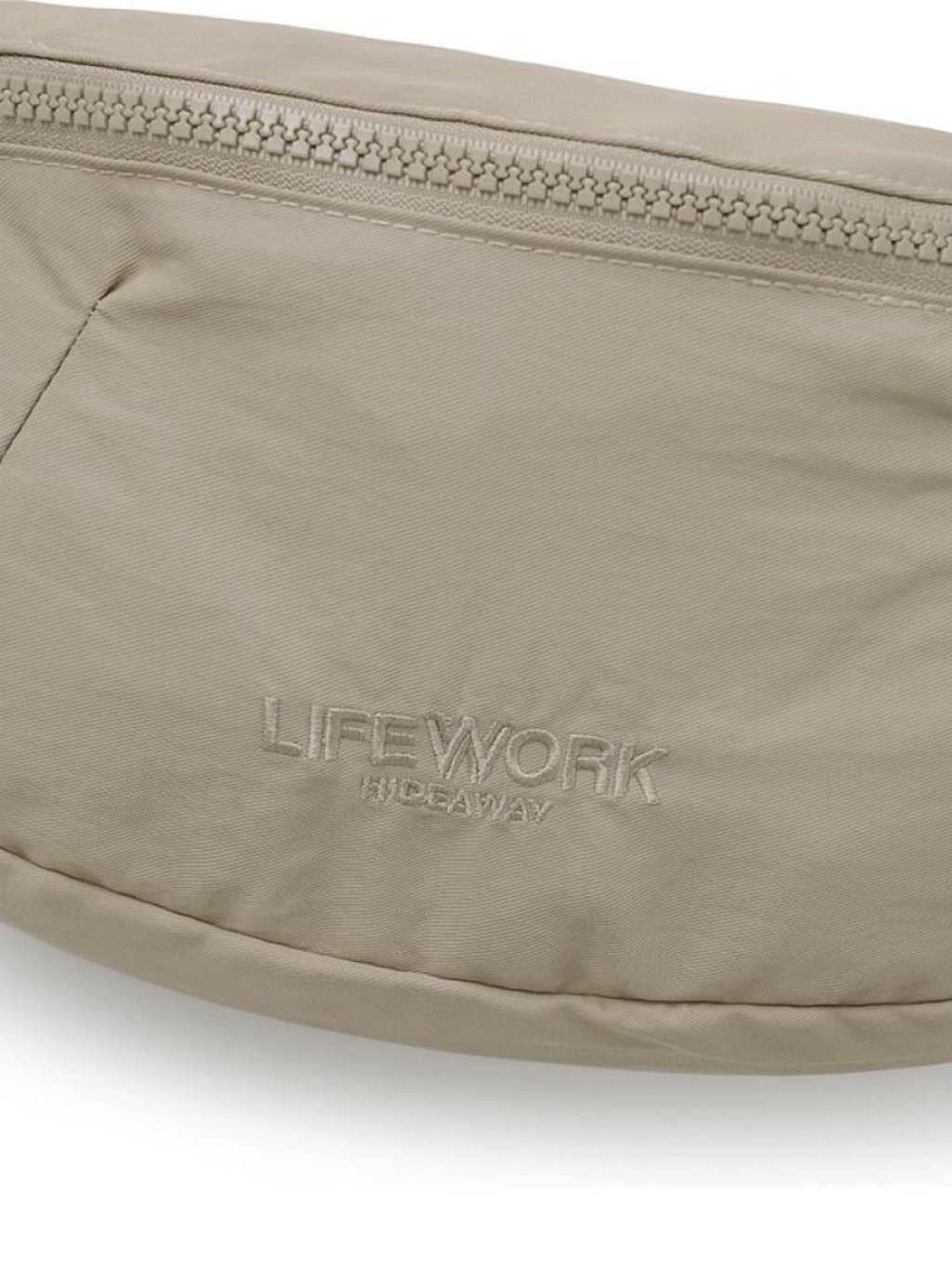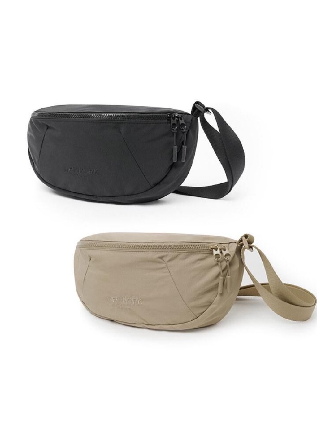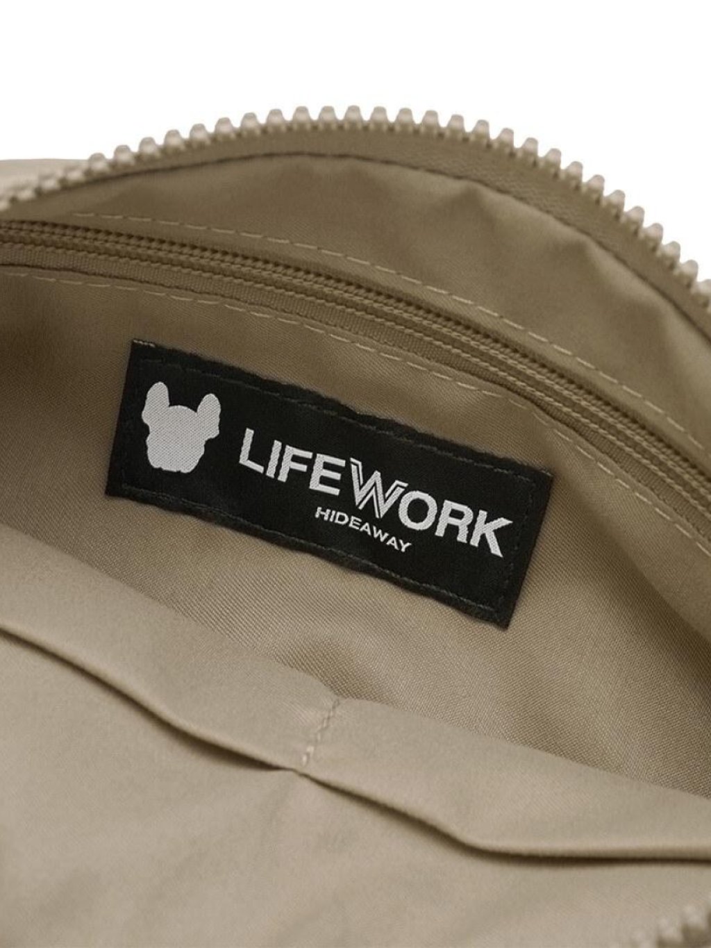 LW402 LIFEWORK刺繡字拉鍊斜小孭袋 $199 黑BLACK(40)、杏BEIGE(10) LW265BG423-1