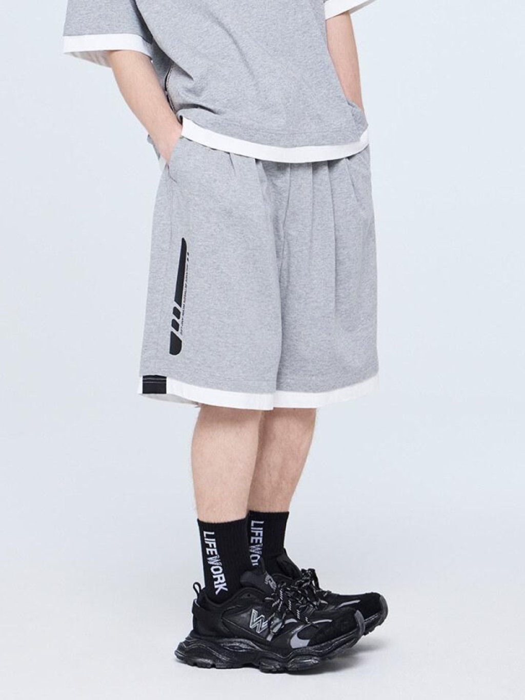 LW407 LIFEWORK全橡筋腰索繩拼白布短褲 $279 黑BLACK(40)、灰MELANGE GREY(35) M、L LW252KS406-1