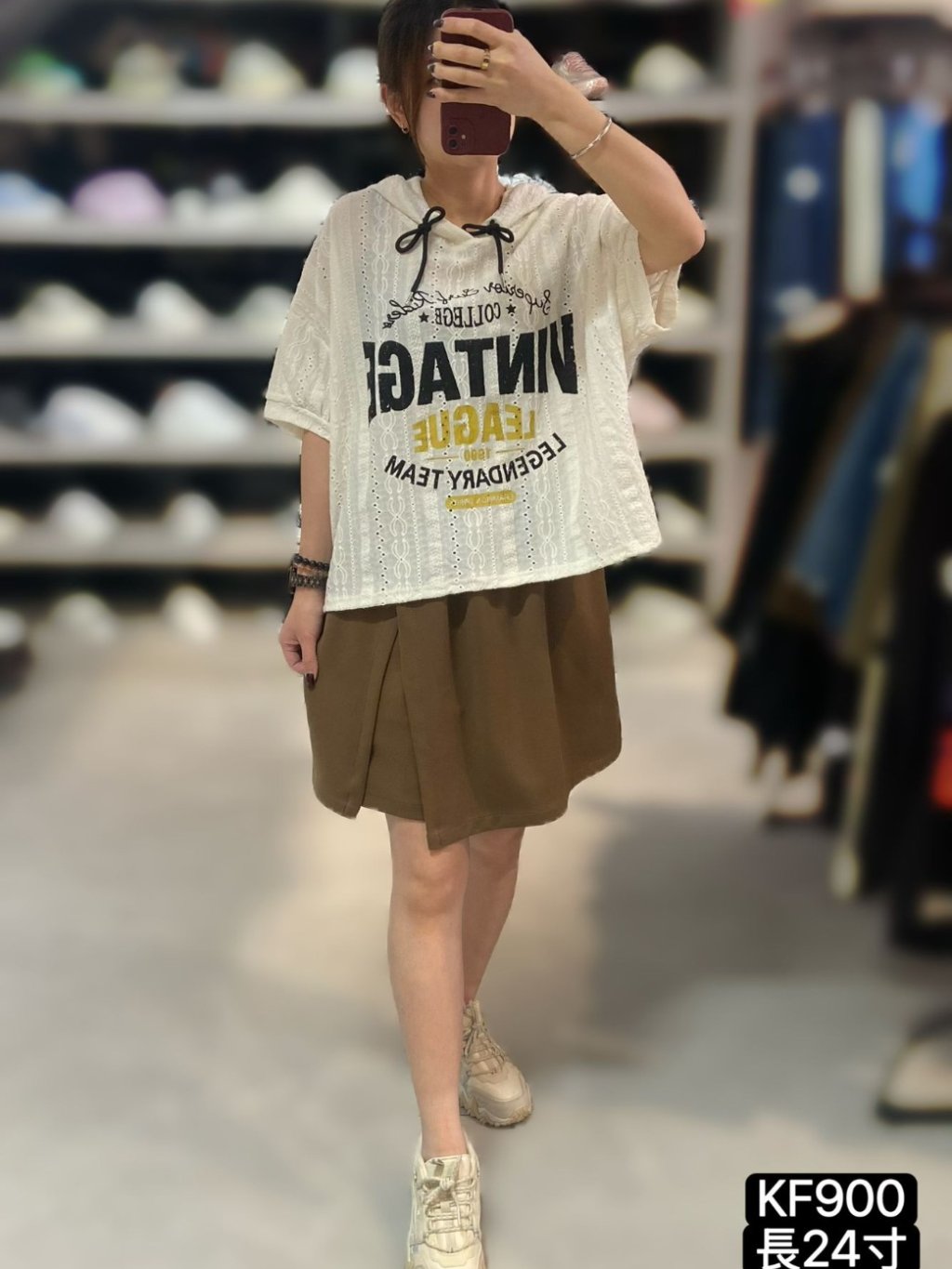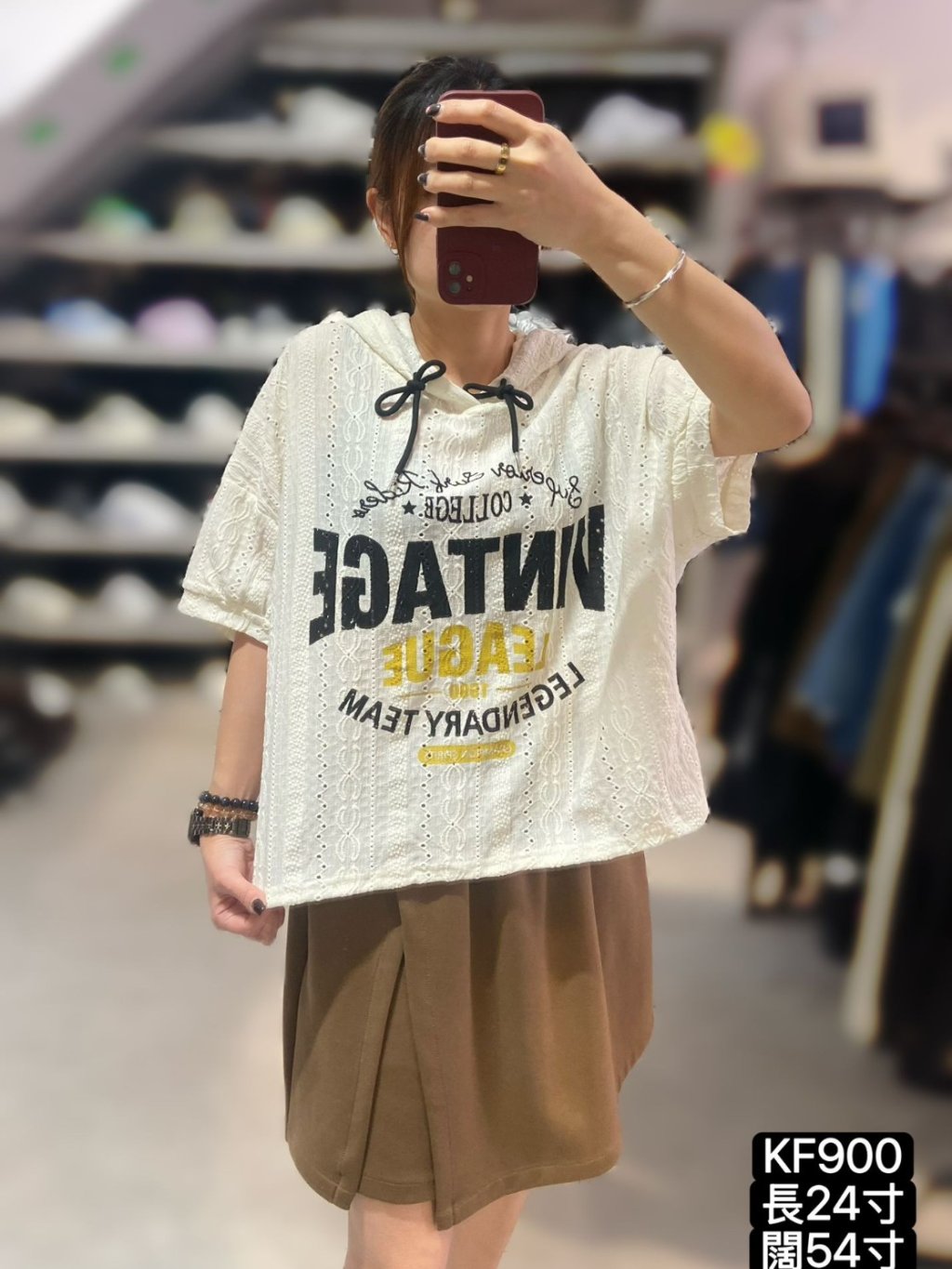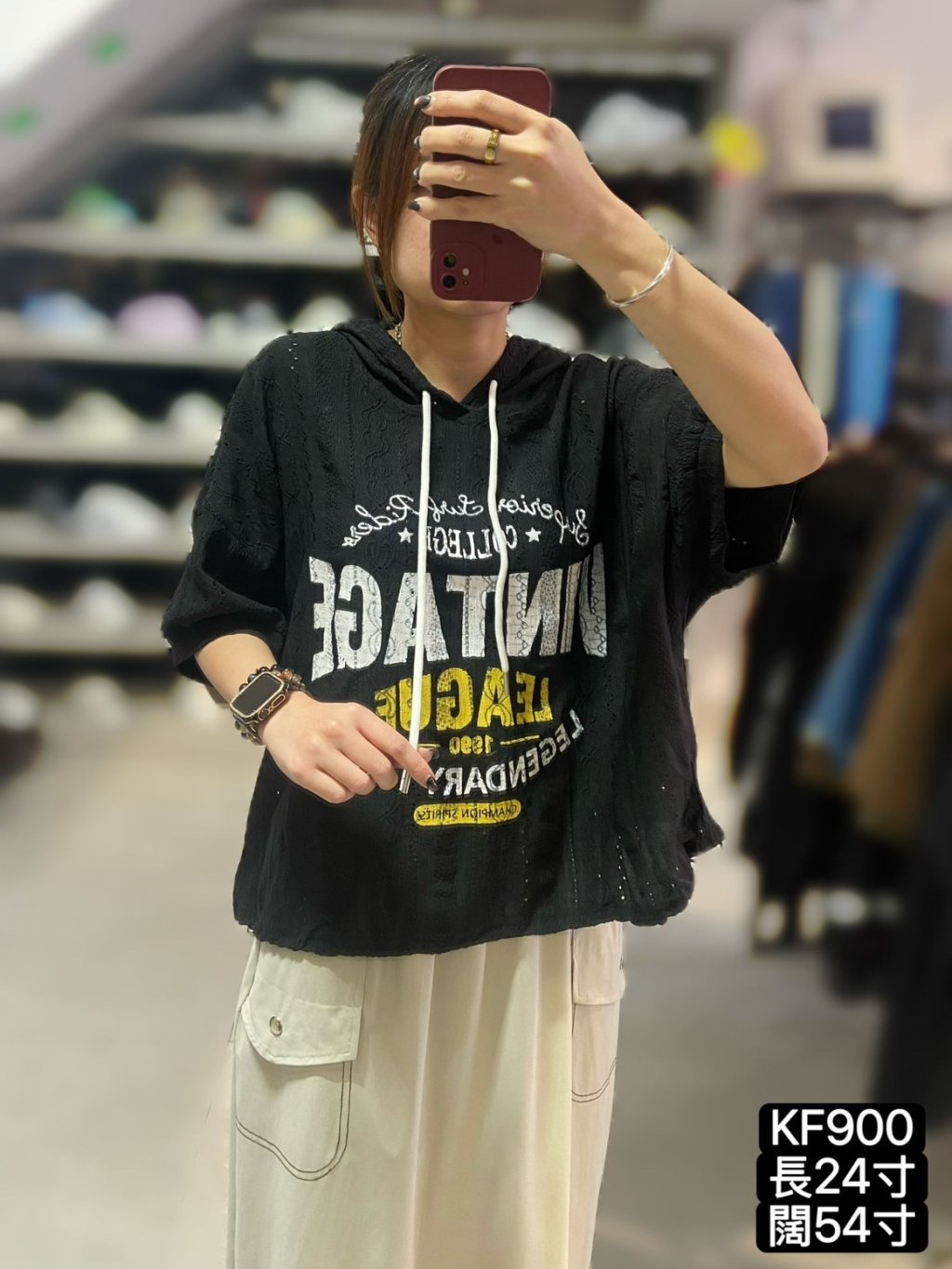 KF900 有帽通花布英文字Top $139 黑 白 長24吋 闊54吋