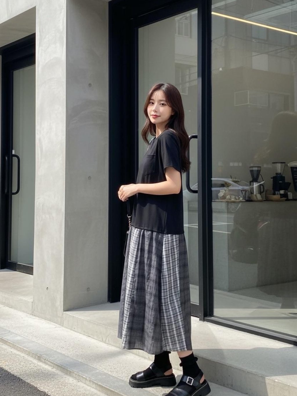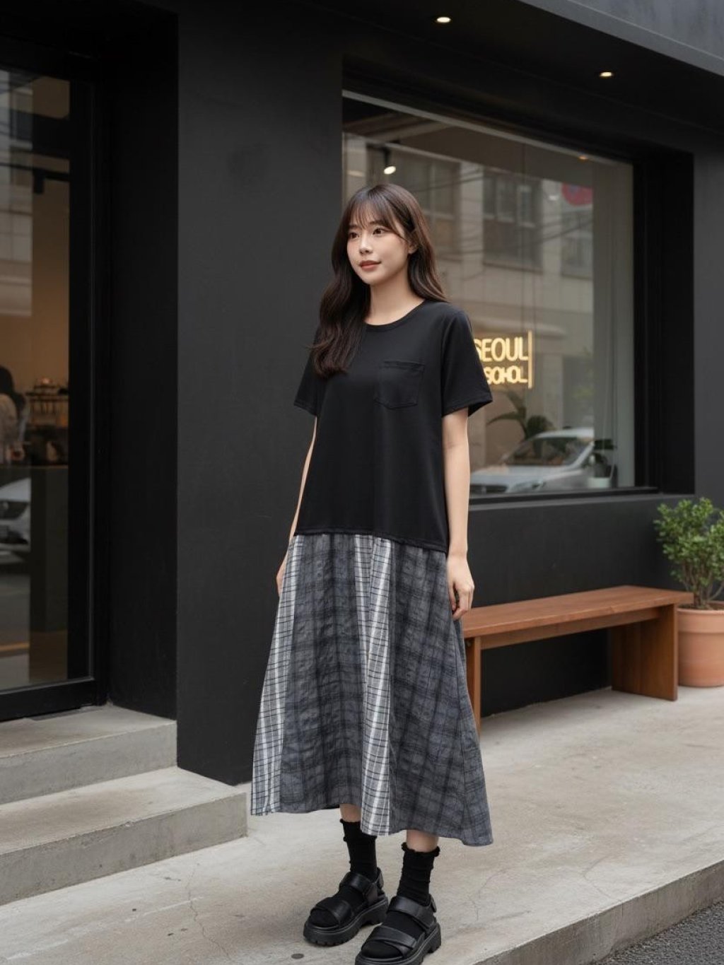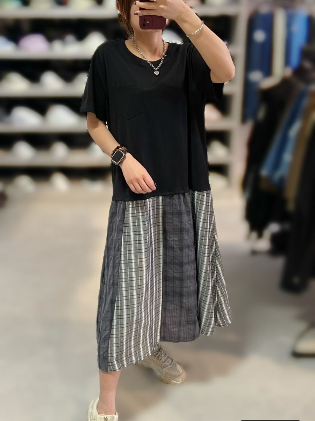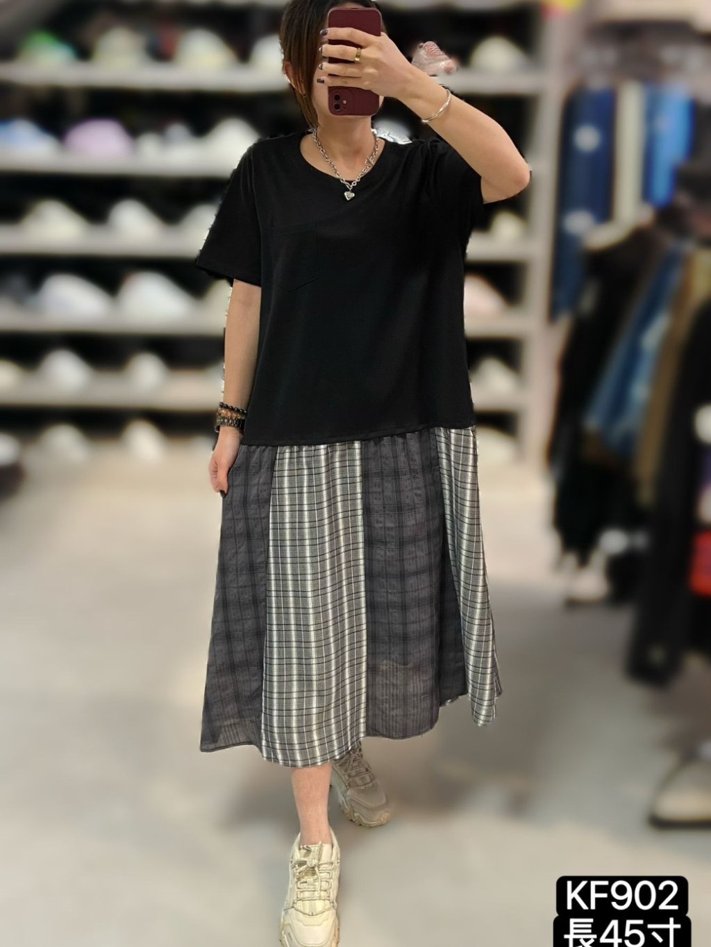 KF902 左胸單袋格仔腳OPS $149 長45吋 闊44吋