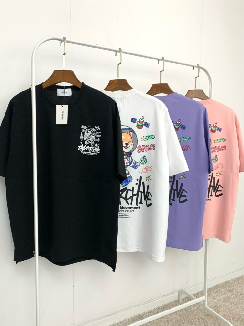 ND142 韓國 🇰🇷 2ND 背面繪畫狗仔太空人TEE $169 黑、白、紫、粉