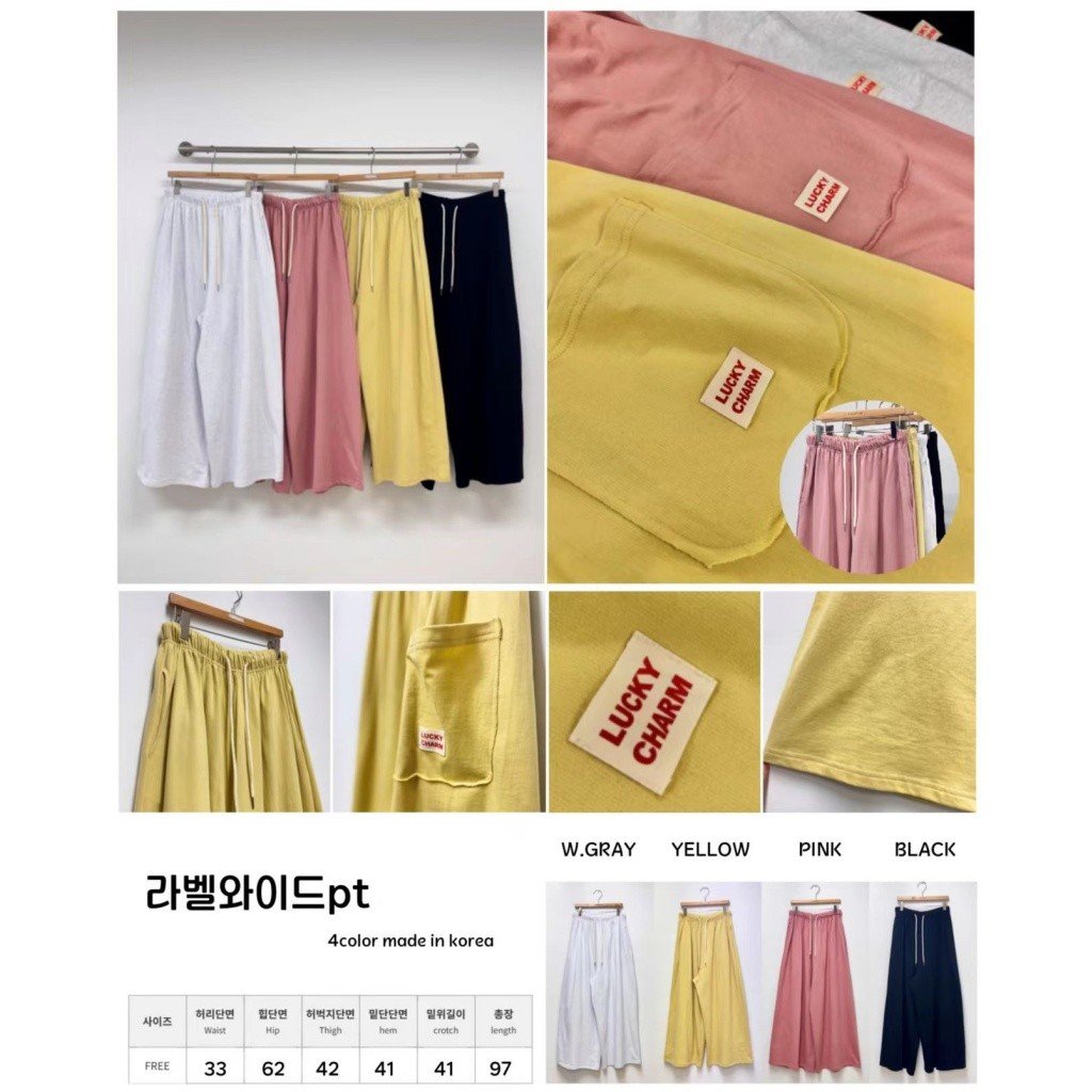 SJ104 全橡筋腰LUCKY車章方袋棉褲 $119 灰、黃、粉、黑 腰26-46寸、Hip52寸、長98cm