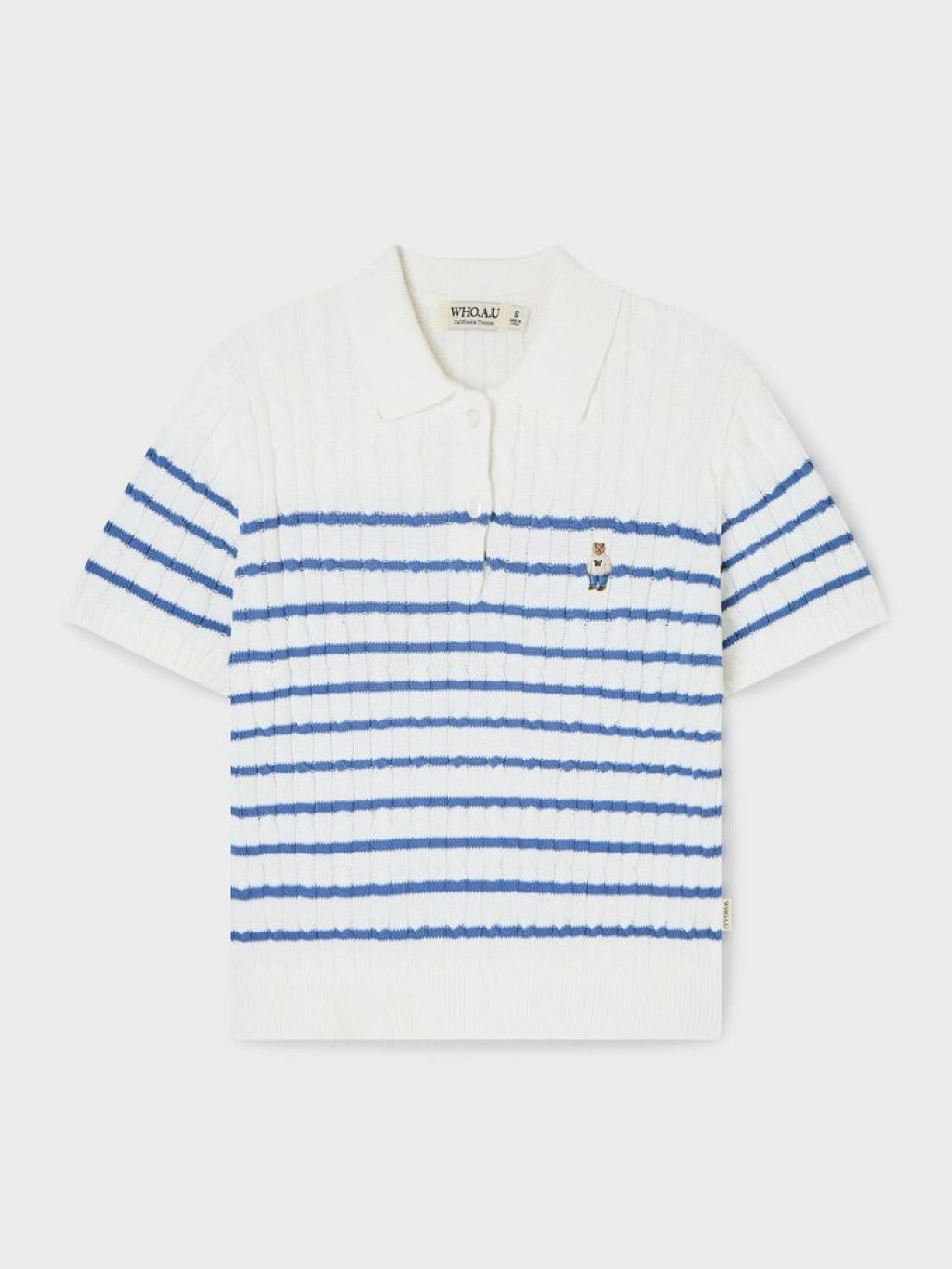 WH208 韓國🇰🇷潮牌 WHO.A.U 左胸刺繡STEVE熊仔麻花TOP $159 WHKAG2423F 藍、白 S、M
