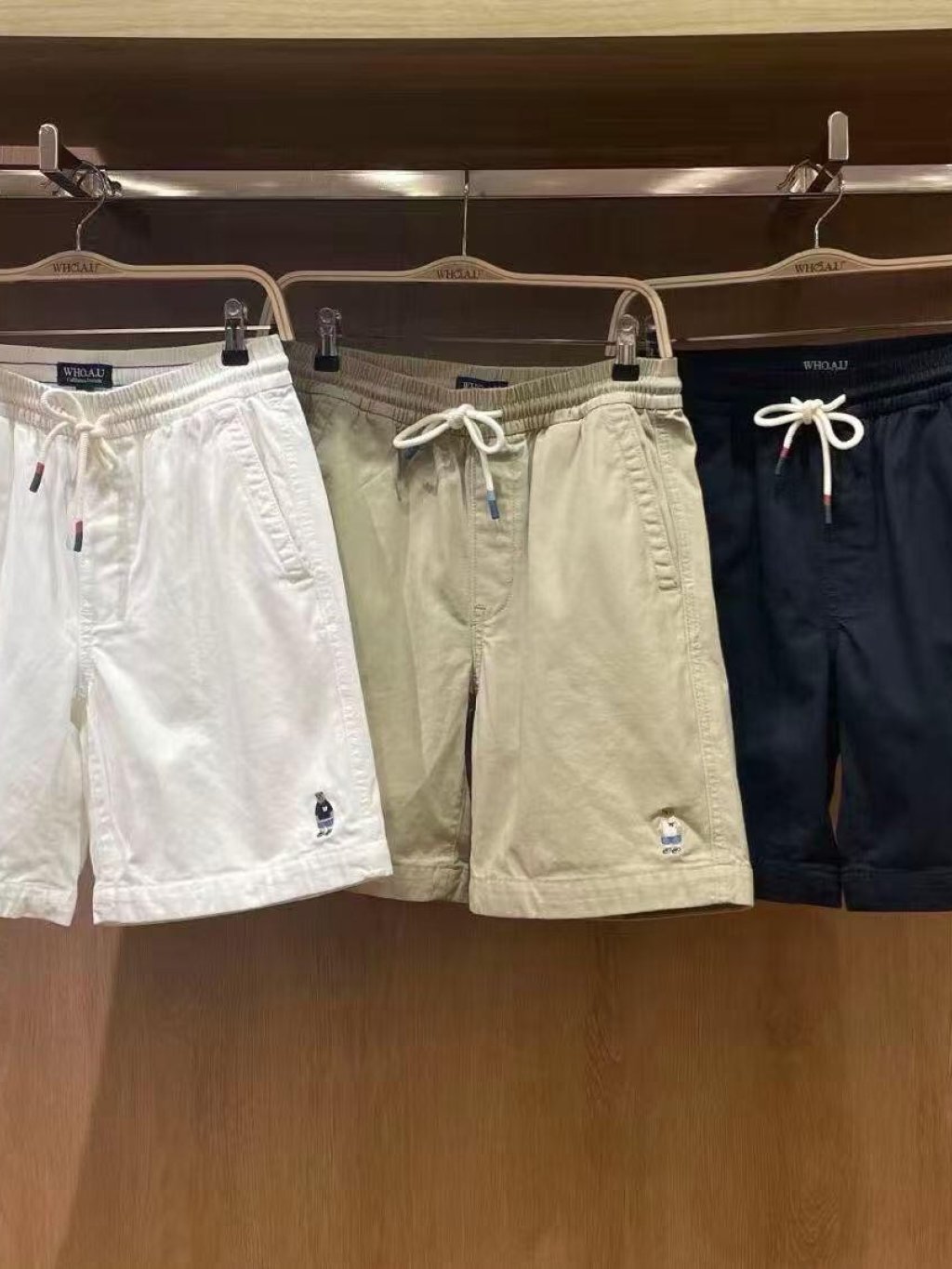 WH234 韓國🇰🇷潮牌 WHO.A.U 刺繡短褲 $199 米、杏、藍 S、M、L、XL WHTHG2501M