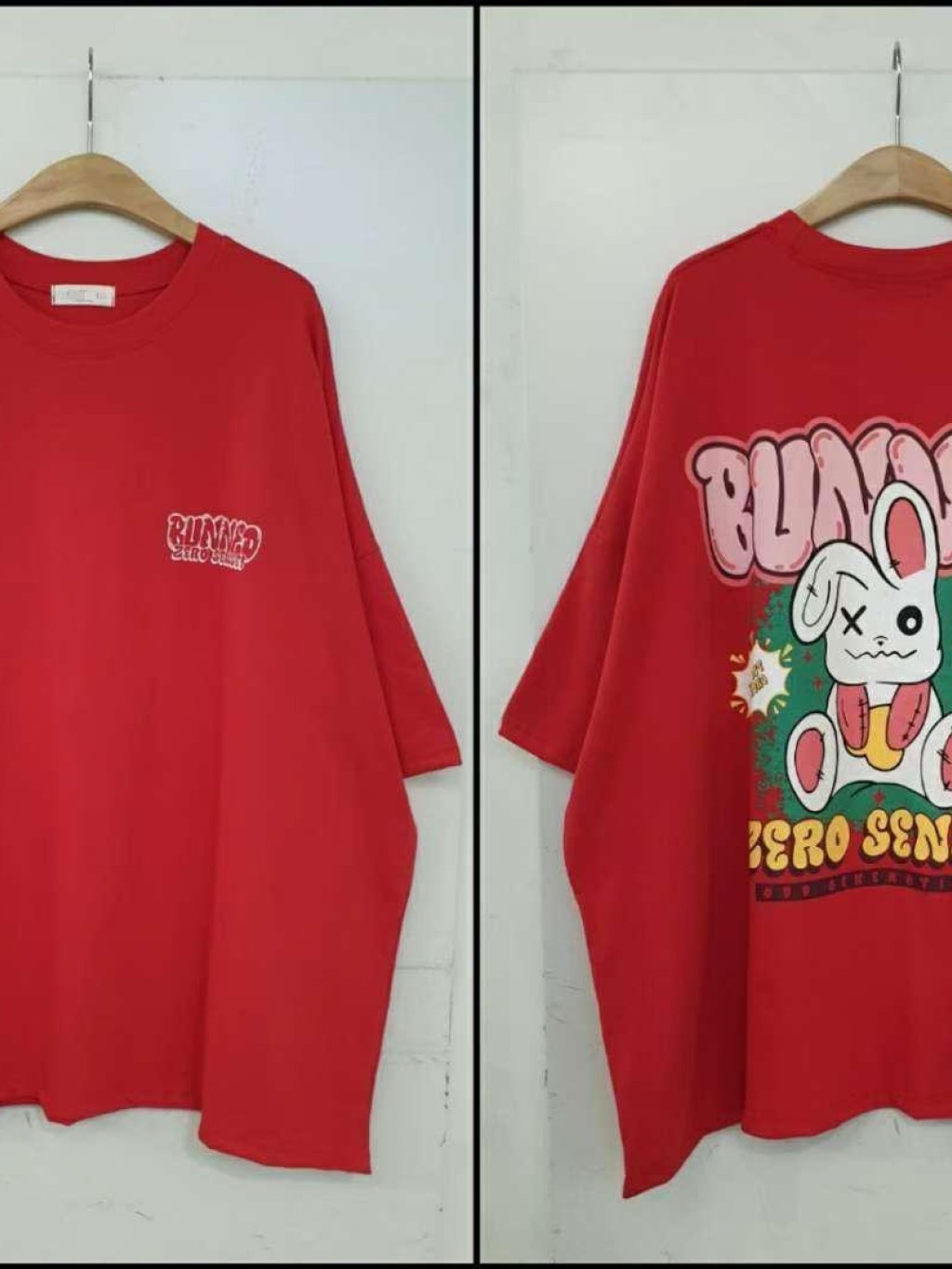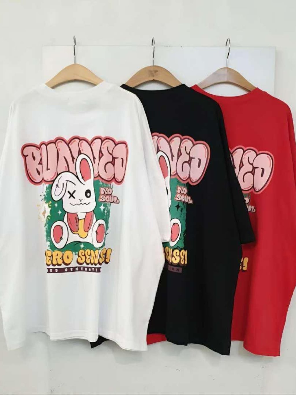 NE57 韓國 🇰🇷 背面兔仔彩字TOP $129 長28寸、闊56寸 白、黑、紅