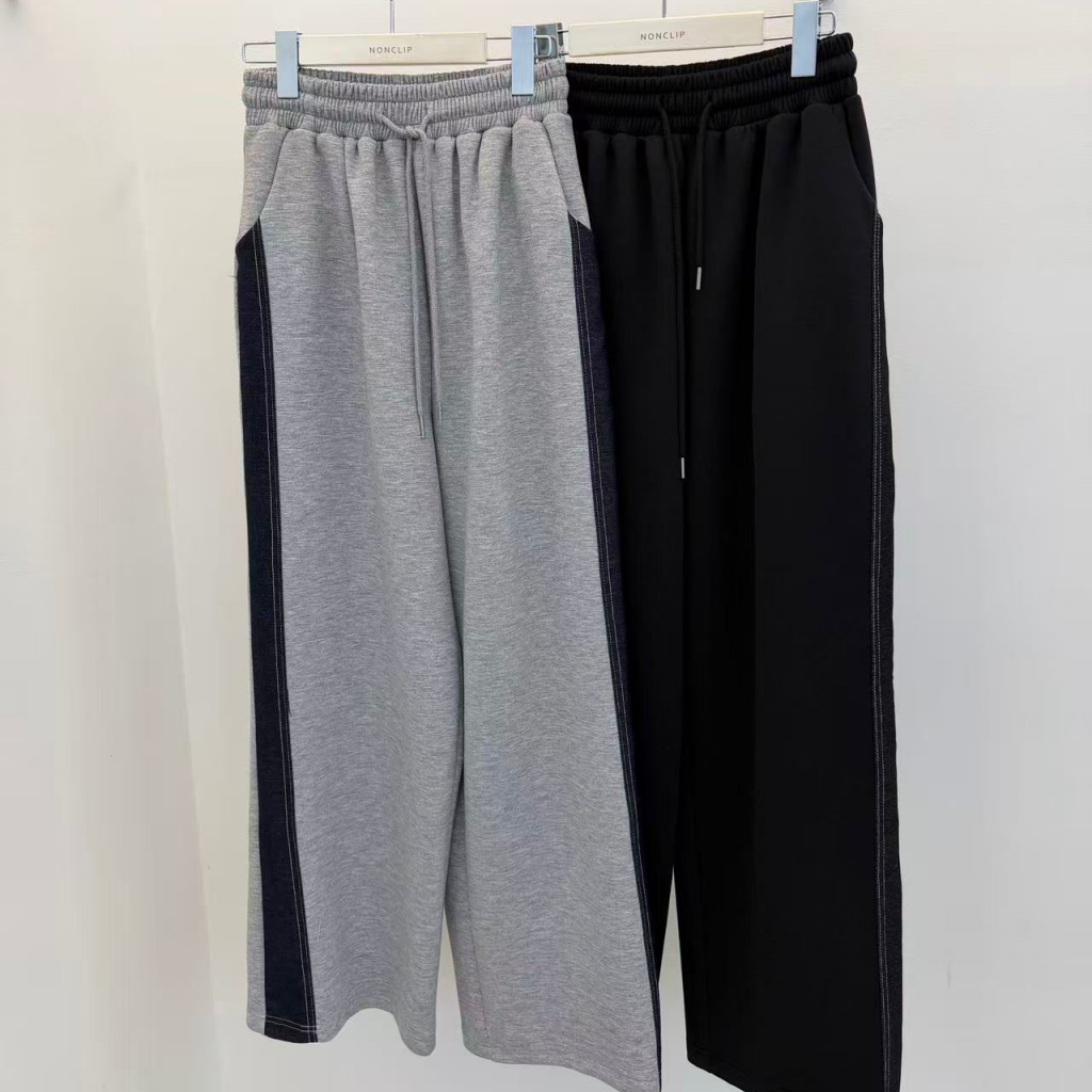 NP46 韓國 🇰🇷 全橡筋腰索繩兩側撞色顯瘦長褲 $229 黑、灰 S、M