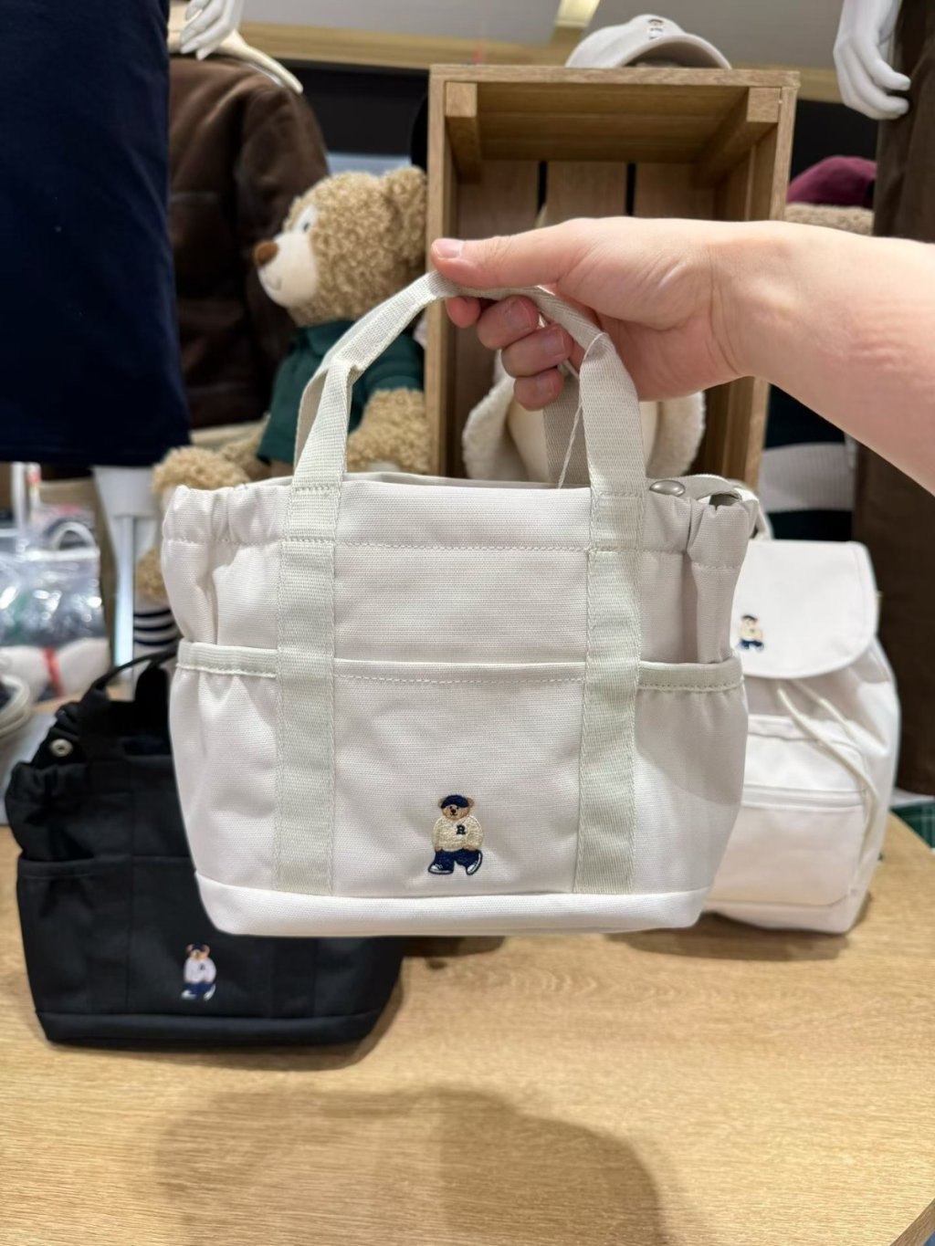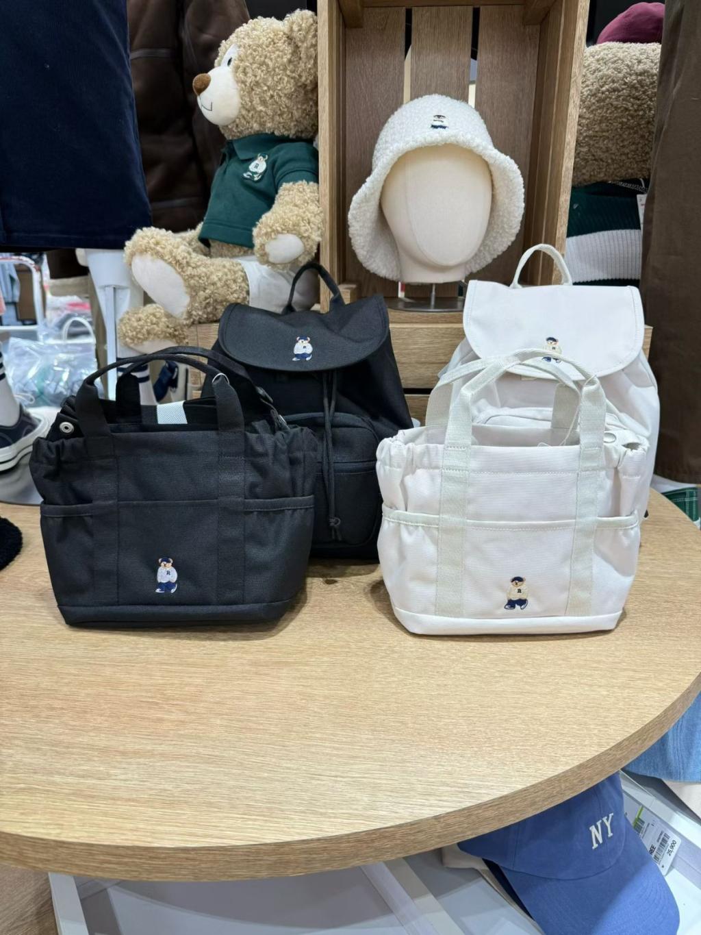 SP106 韓國🇰🇷潮牌 SPAO 刺繡熊仔斜孭袋 $169 黑、米