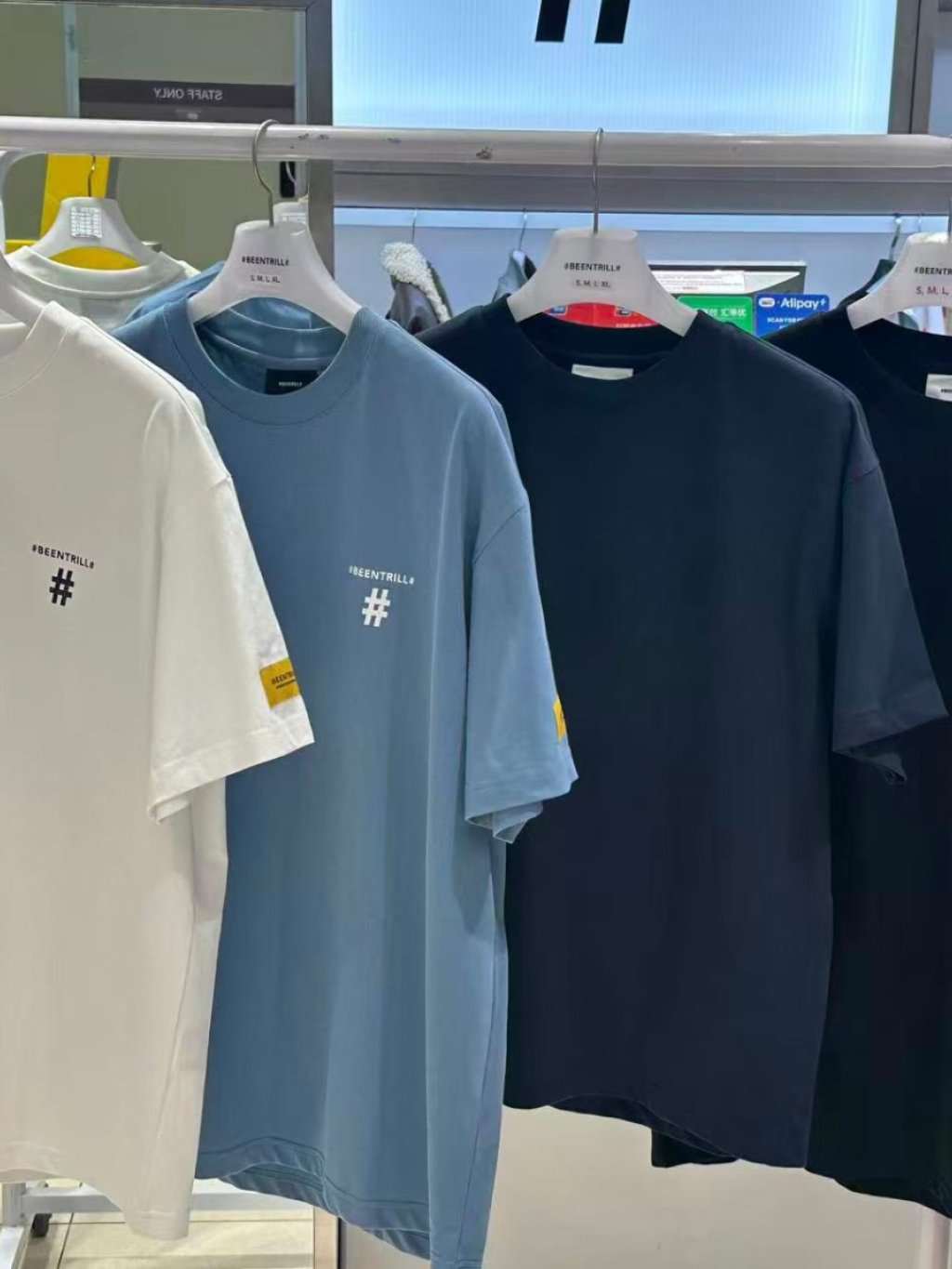 BE85 韓國🇰🇷潮牌BEENTRILL#家 男女同款背面造舊感井Logo TEE (BA262TS005) $199 黑、白、深藍、淺藍 S、M、L、XL