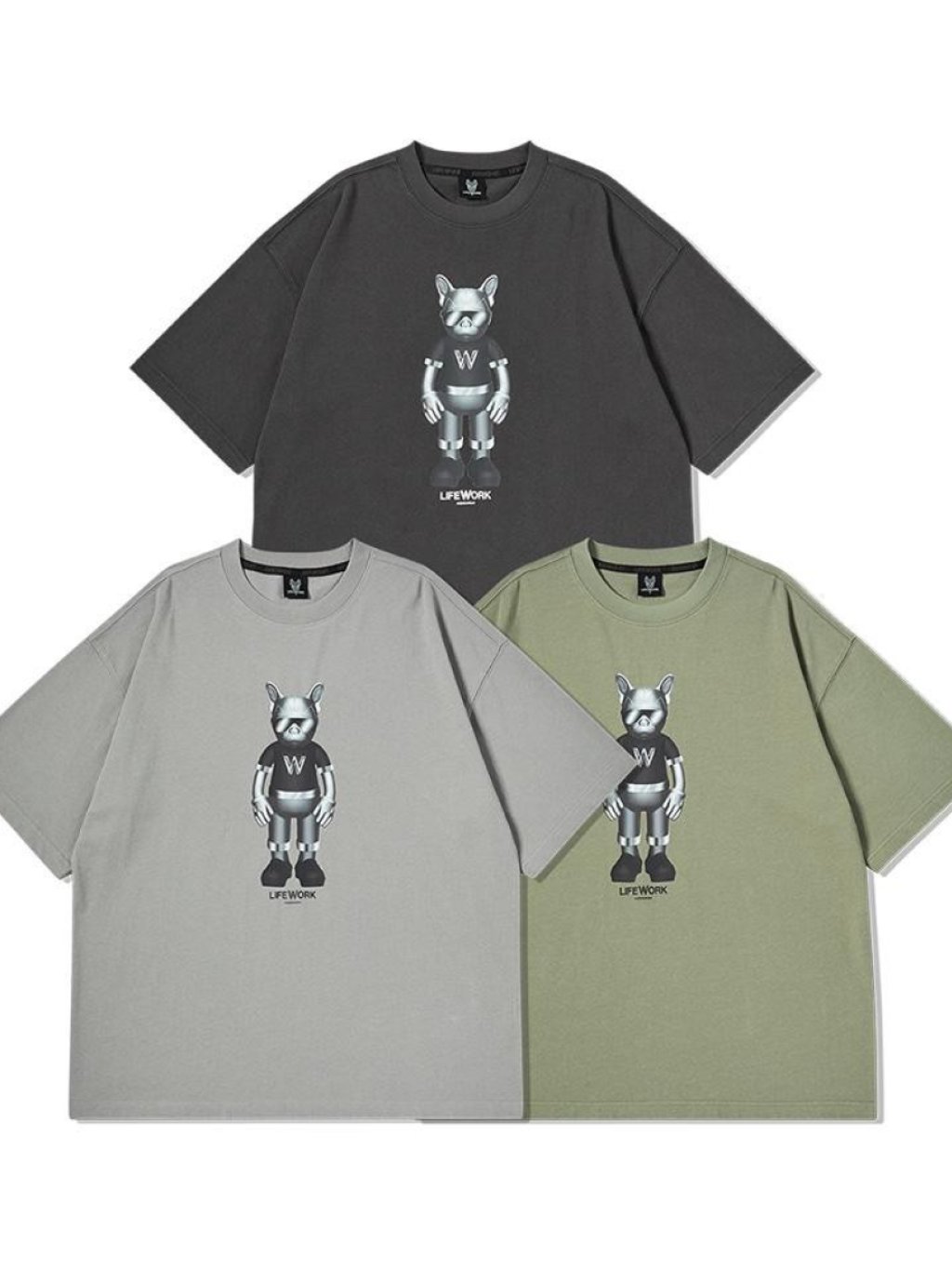 LW418 LIFEWORK銀色機械狗仔Top $239 深灰CHARCOAL GREY(36)、淺灰LIGHT GREY(32)、綠LIGHT KHAKI(20) S、M、L LW252TS110-1