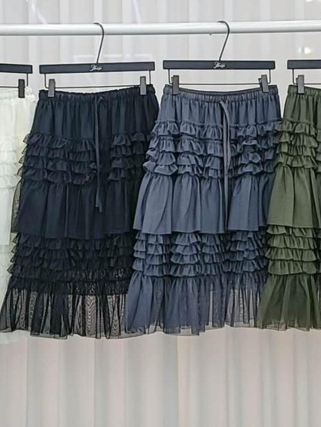 BA158 韓國 🇰🇷 全橡筋腰層層紗拼半裙 $179 白、黑、灰、綠 腰24-42寸、Hip44寸、長65cm