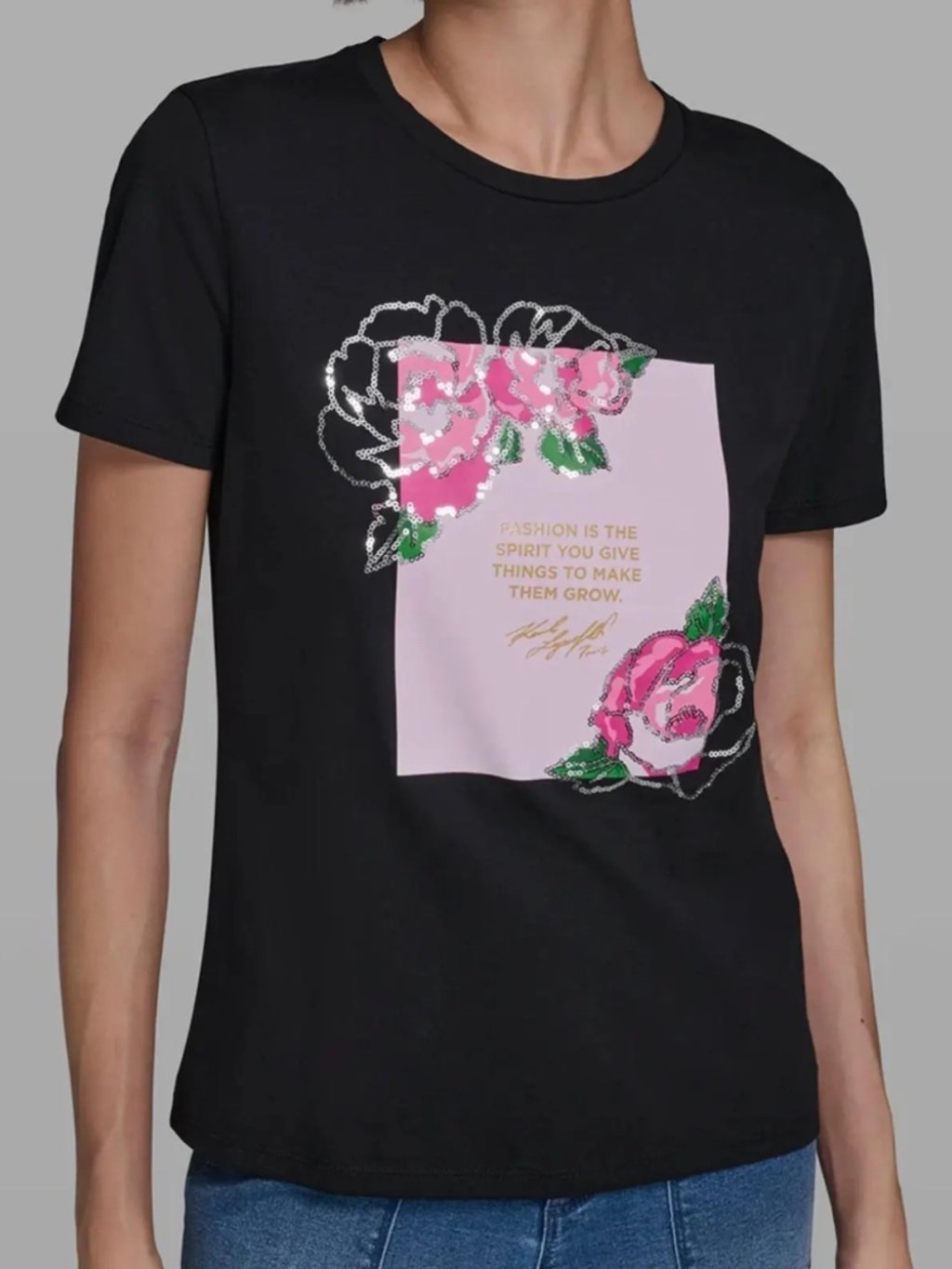 NO.1339 Karl Lagerfeld 女裝玫瑰 Tee (黑) KL17 $339 XS S M L XL