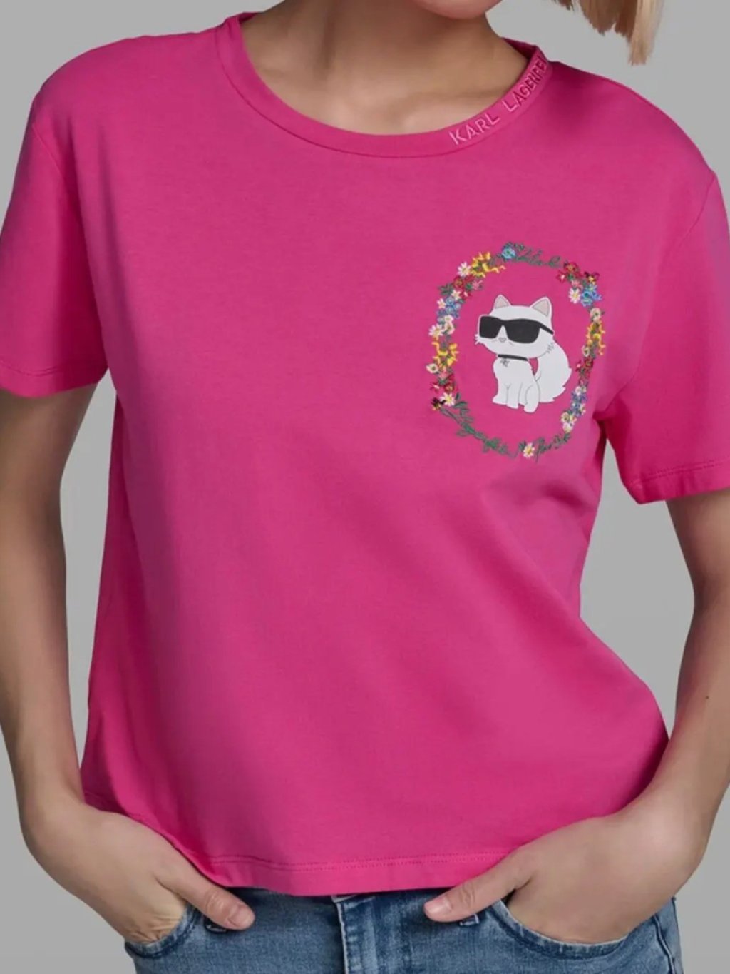 NO.1358 Karl Lagerfeld 女裝貓貓Logo短 Tee (粉) KL45 $339 XS S M L XL