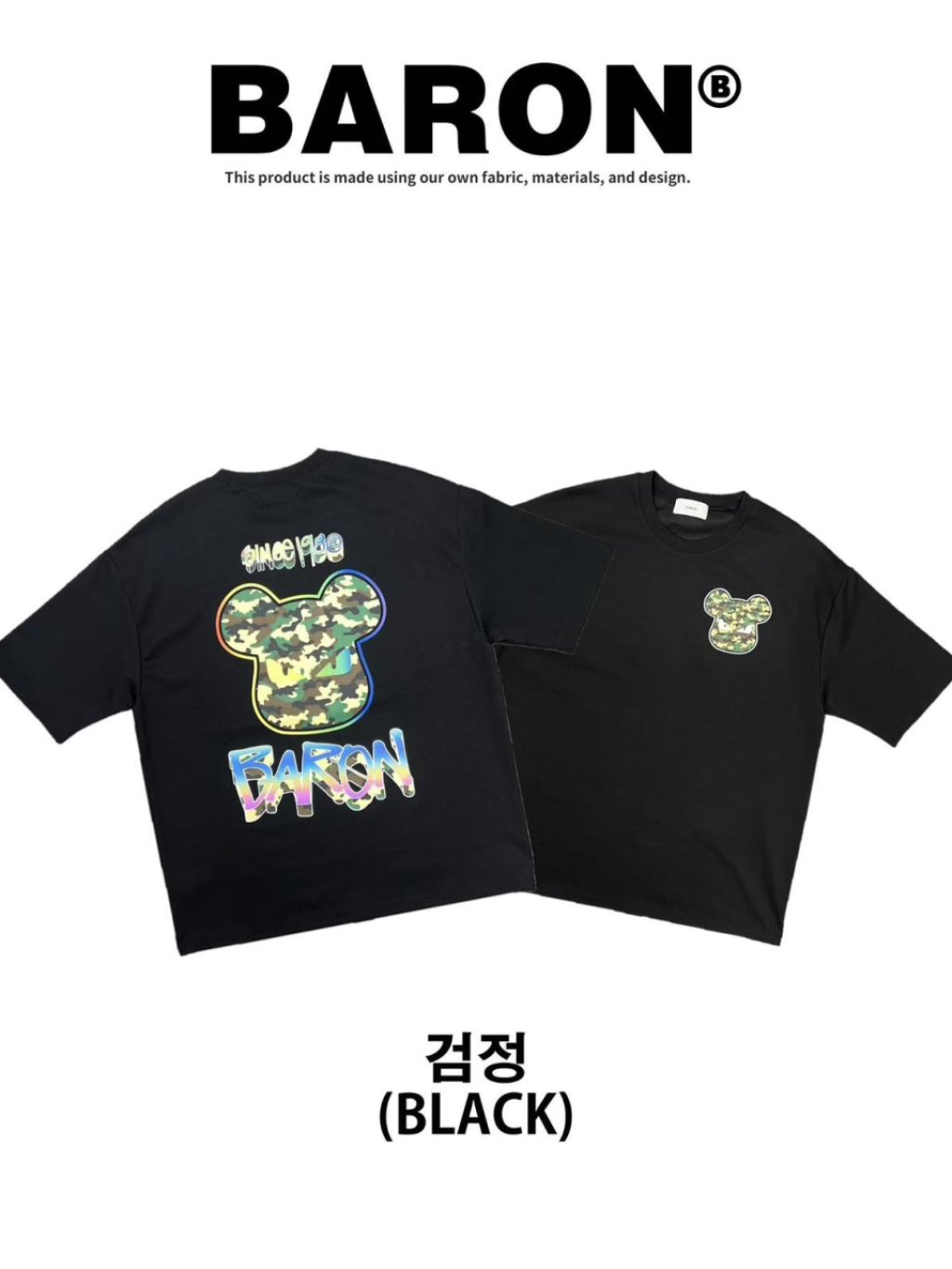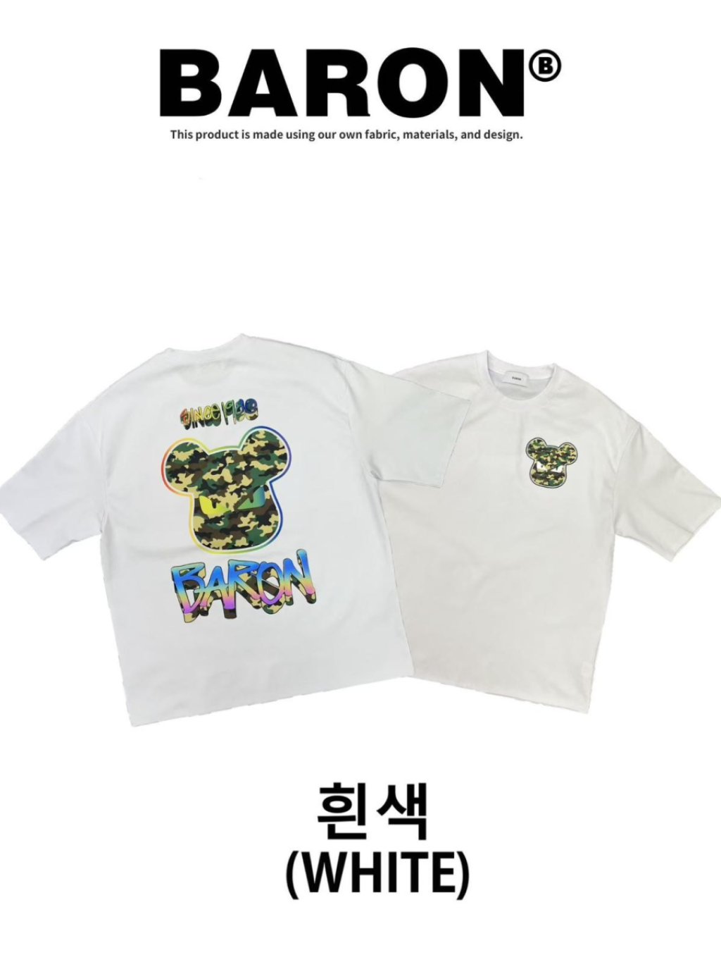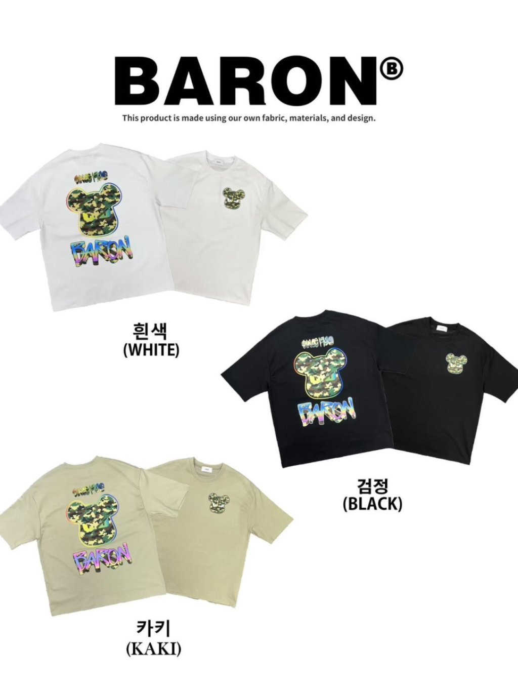 BN154 韓國 🇰🇷 BARON背面迷彩熊仔Top 長29寸、胸闊50寸 $159 白、黑、綠