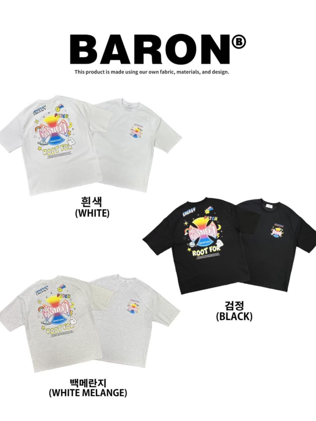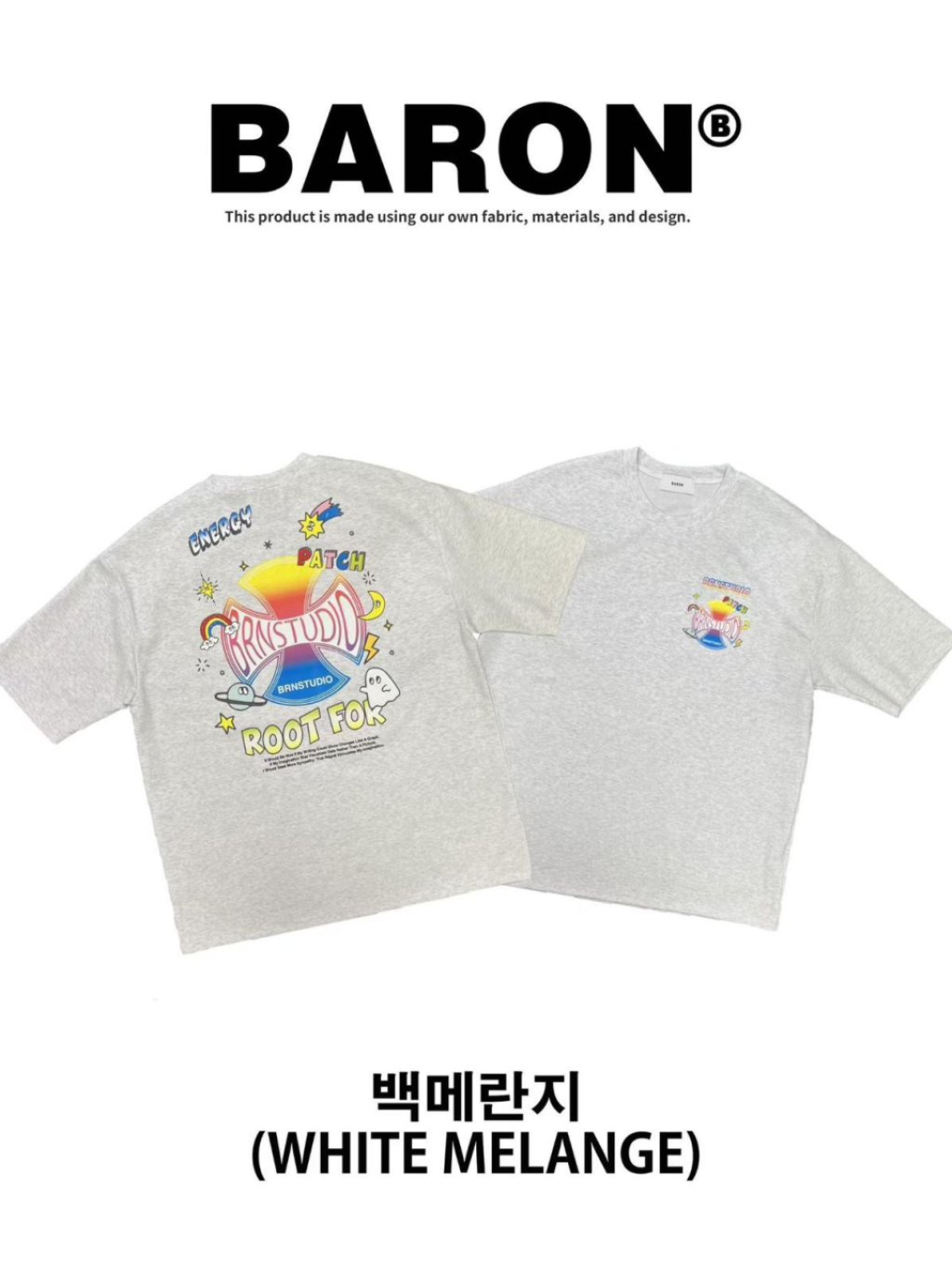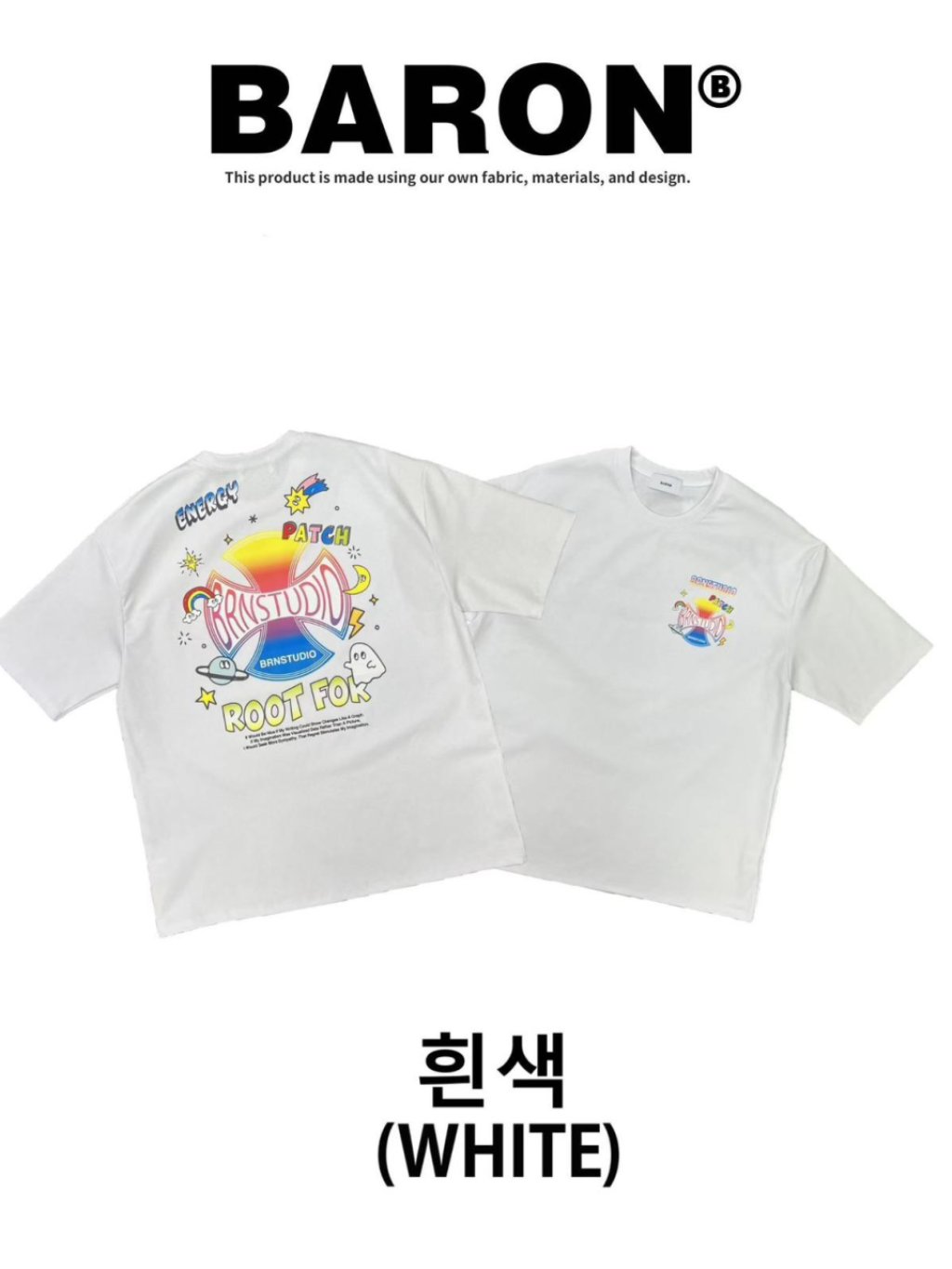 主頁 BN155 韓國 🇰🇷 BARON背面Q版彩色十字架Top 長29寸、胸闊50寸 $139 白、黑、灰