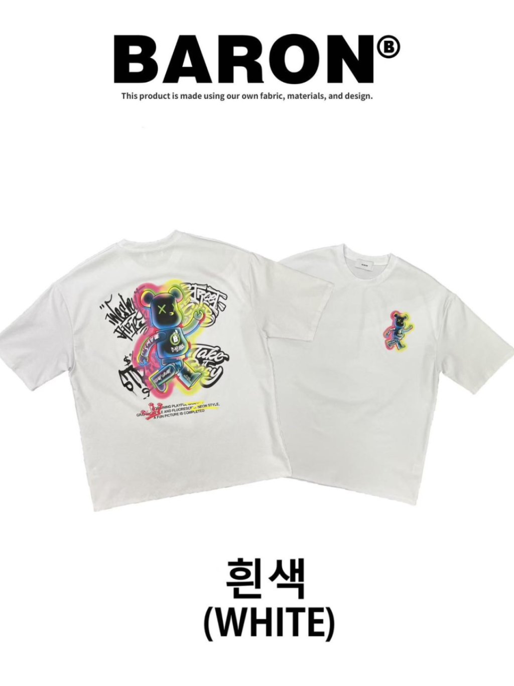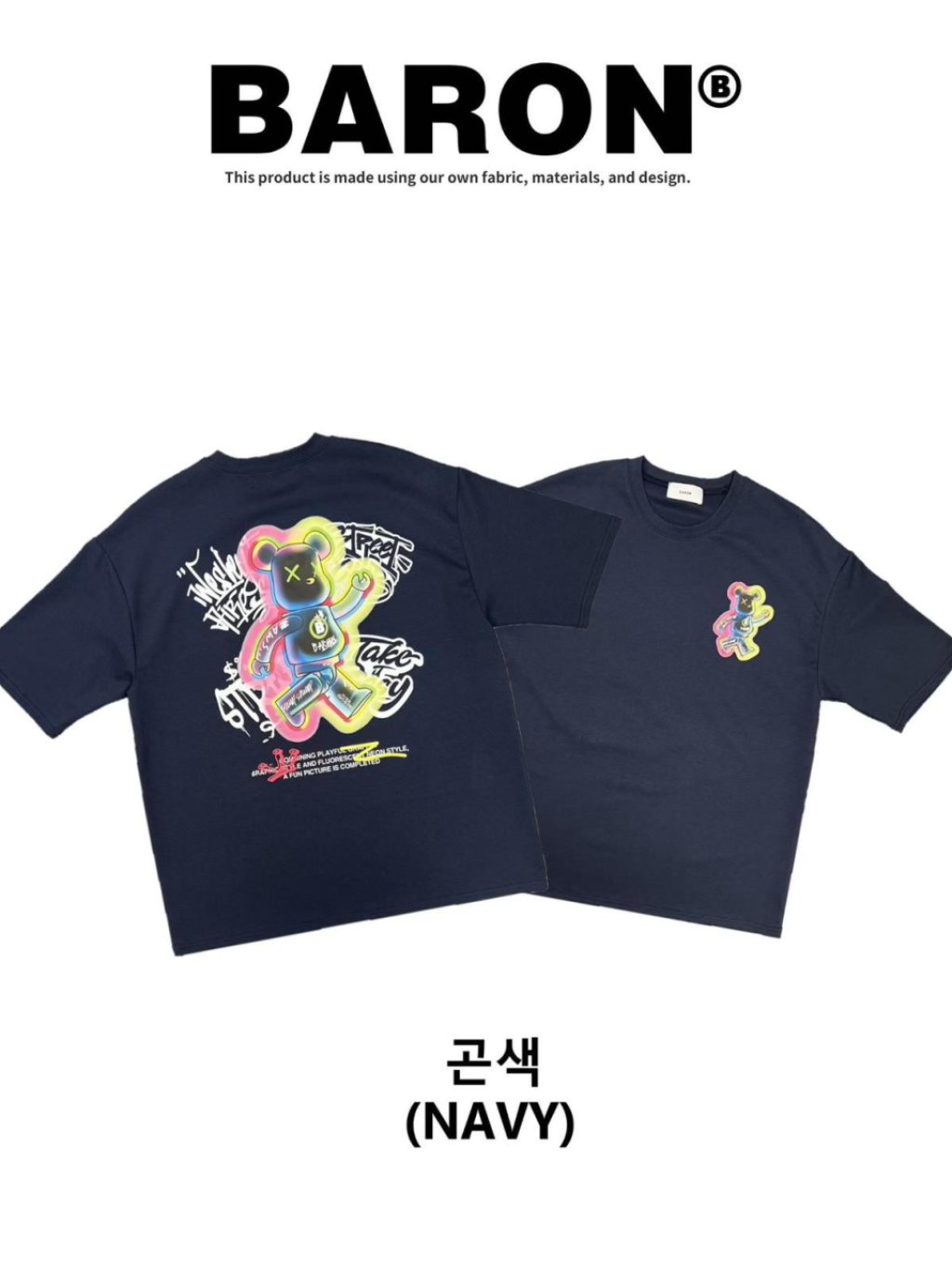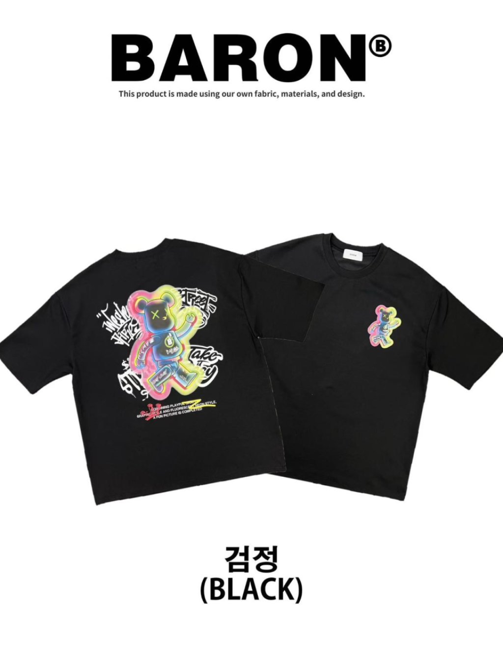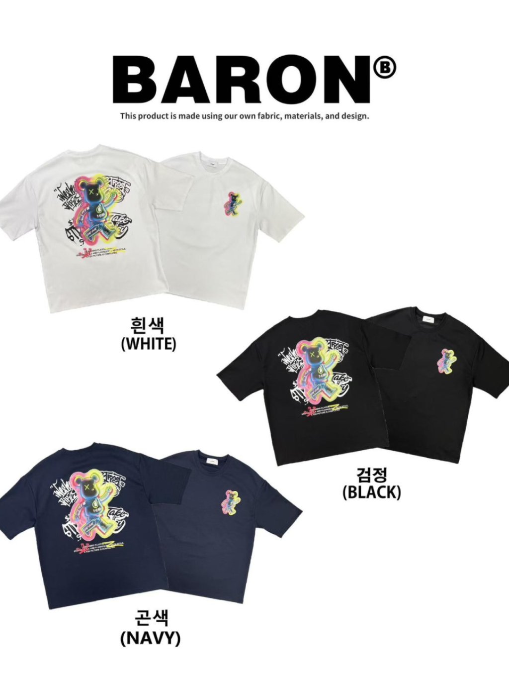 BN159 韓國 🇰🇷 BARON背面彩色走路熊仔Top 長29寸、胸闊50寸 $139 白、黑、藍