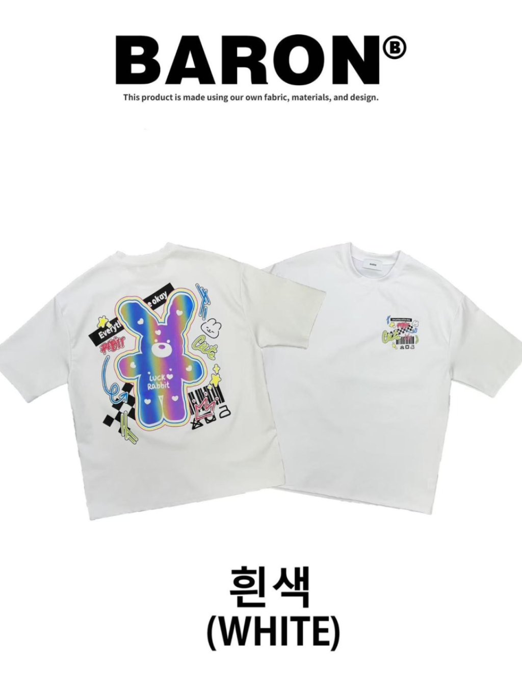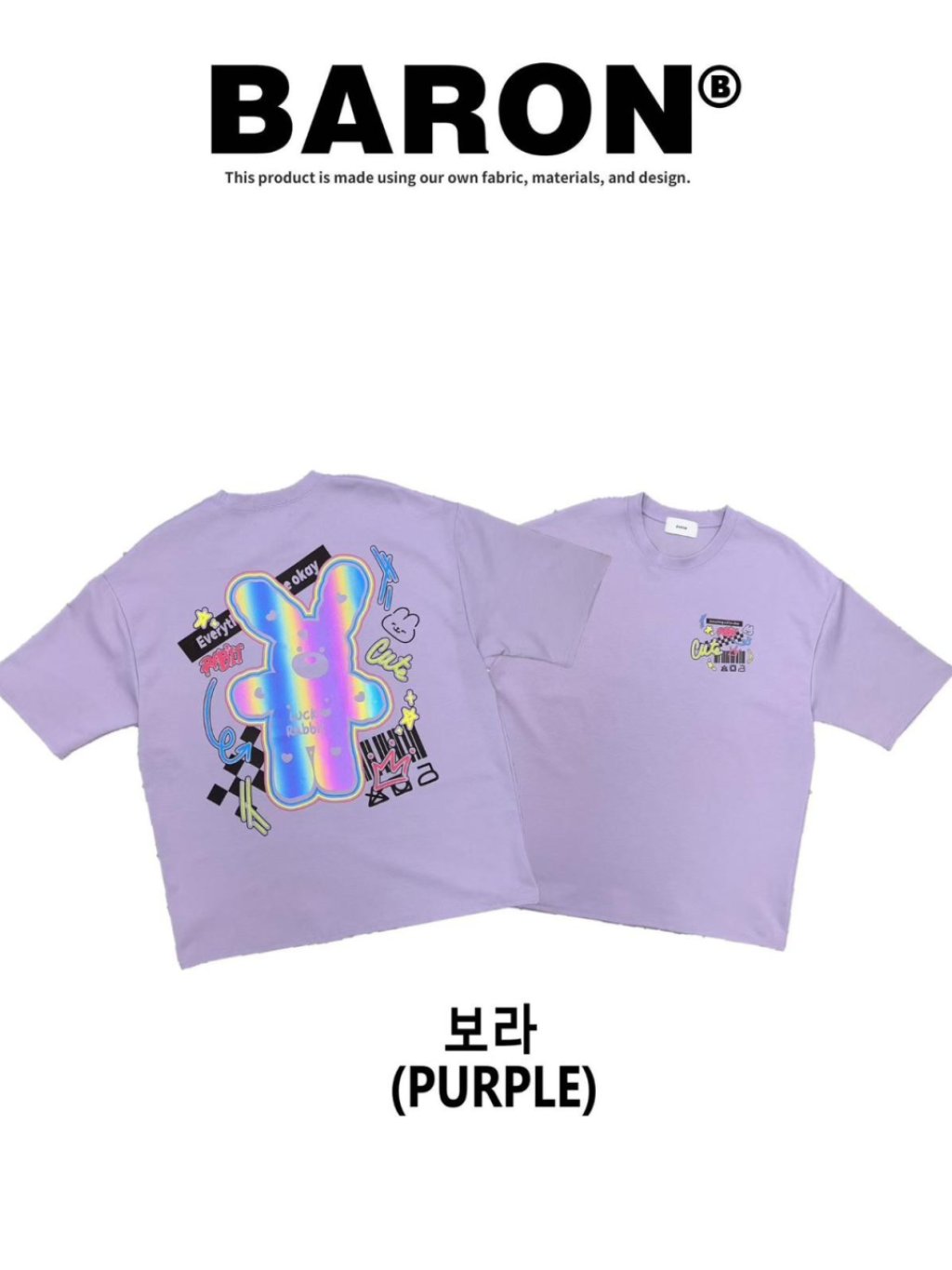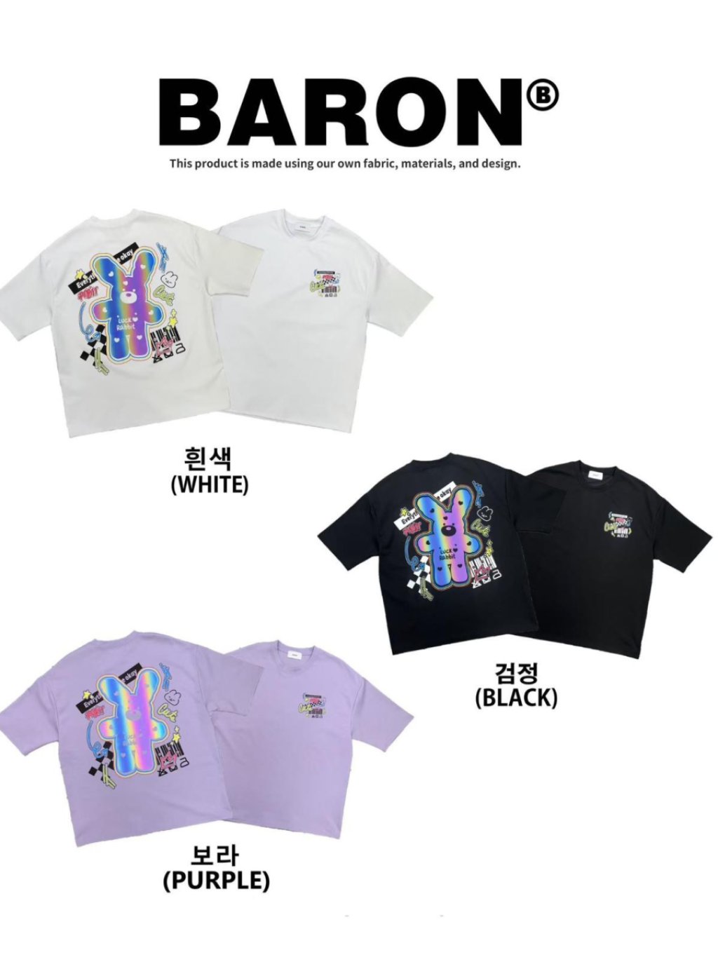 主頁 BN162 韓國 🇰🇷 BARON背面3M反光愛心兔仔Top 長29寸、胸闊50寸 $159 白、黑、紫