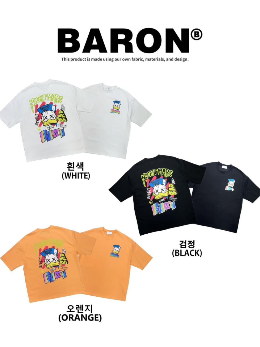 BN165 韓國 🇰🇷 BARON背面X眼鴨仔3M反光文字Top 長29寸、胸闊50寸 $149 白、黑、橙
