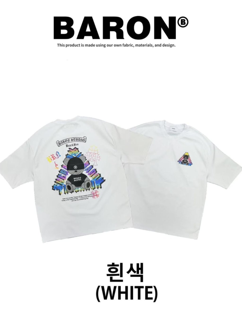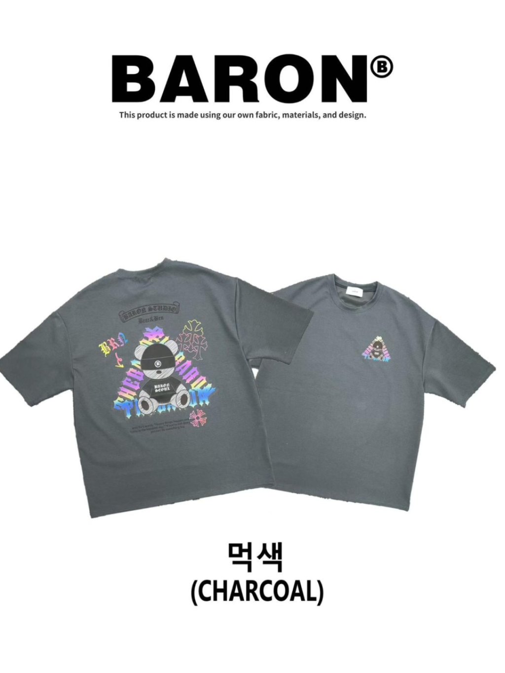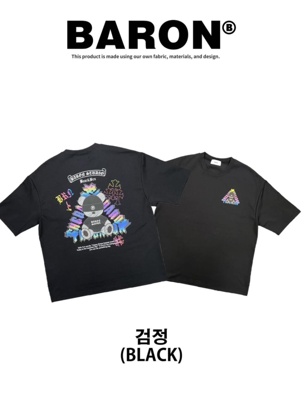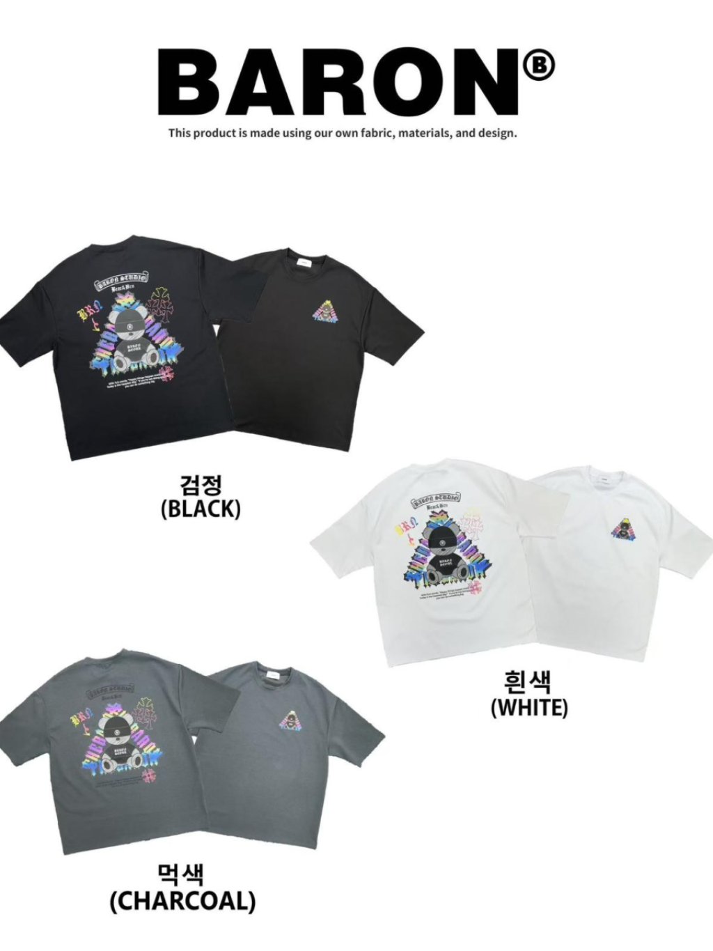 BN171 韓國 🇰🇷 BARON背面3M反光坐姿熊仔Top 長29寸、胸闊50寸 $159 黑、白、灰