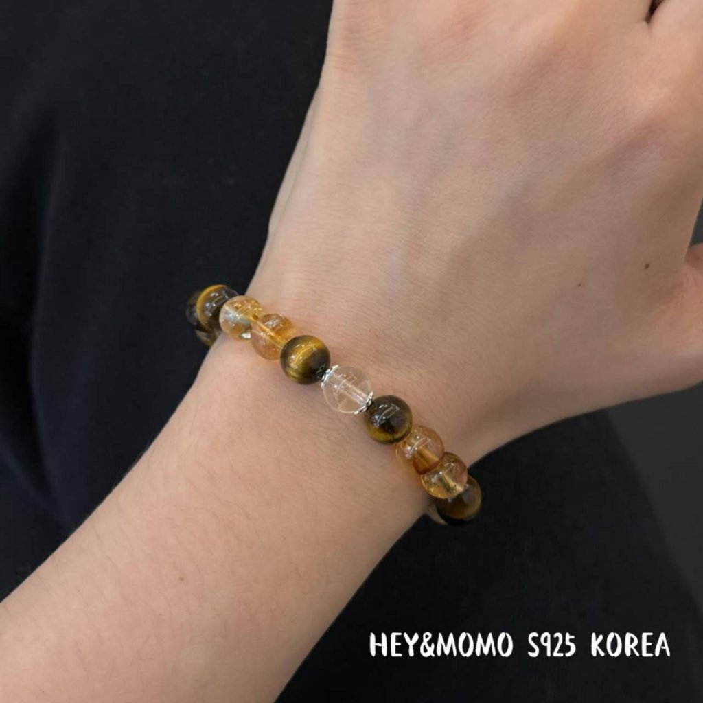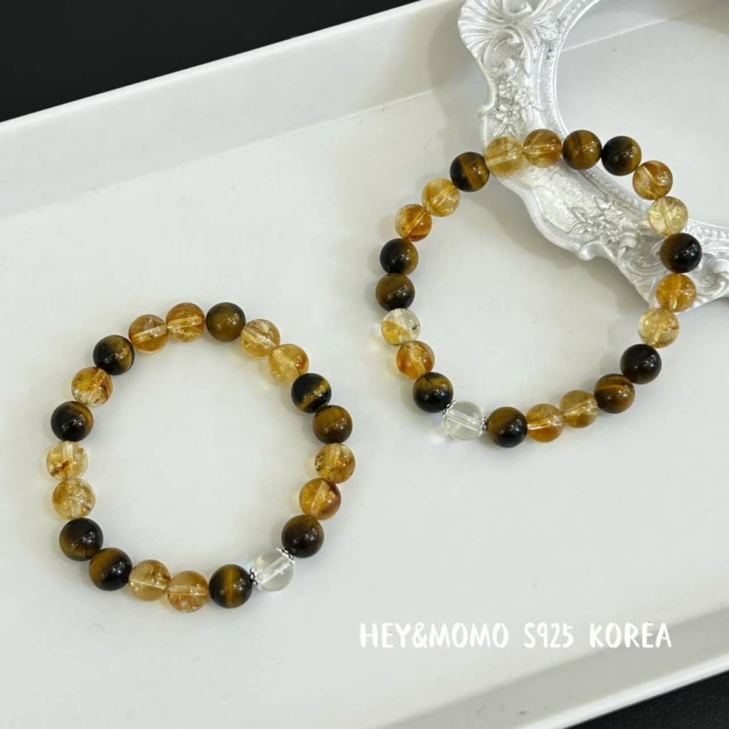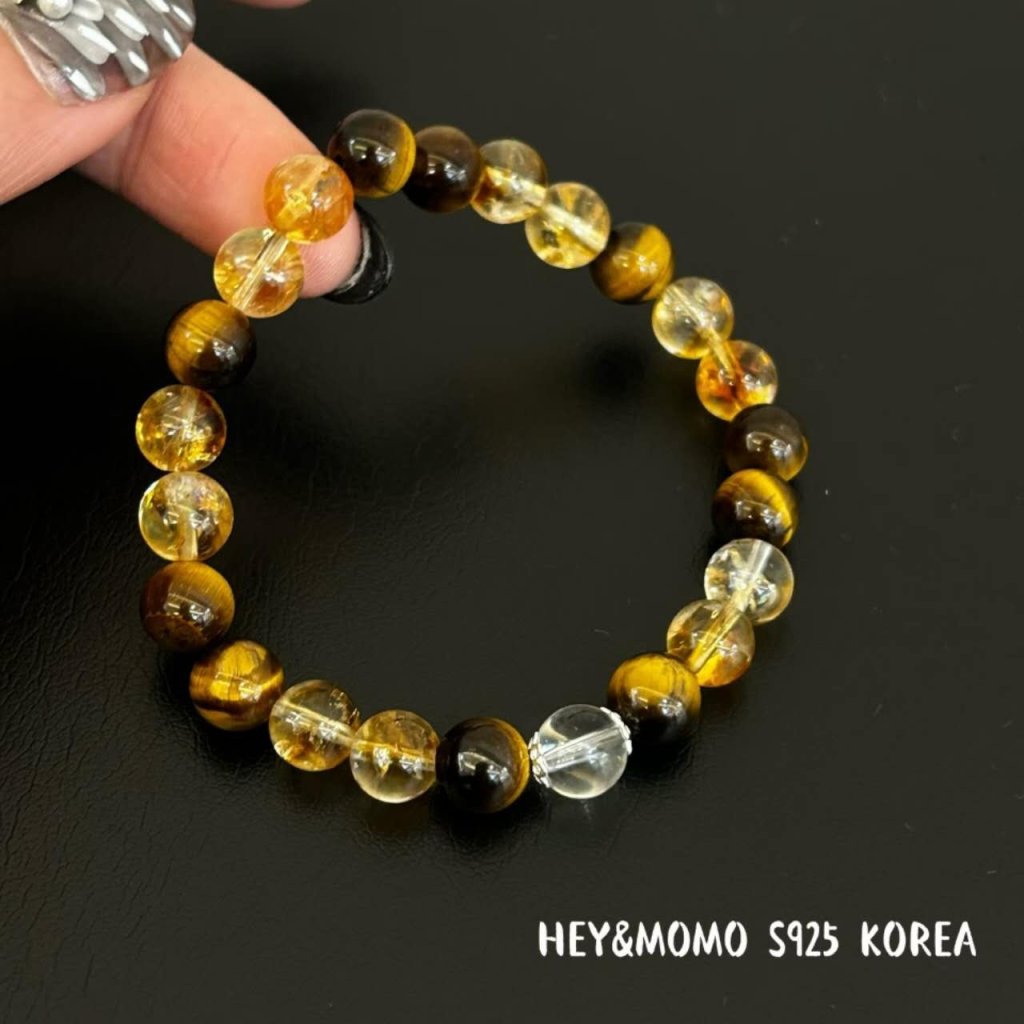 HM618 韓國 🇰🇷 925銀 虎眼石+黃塔晶+白水晶彈力手鏈 $129 小、大