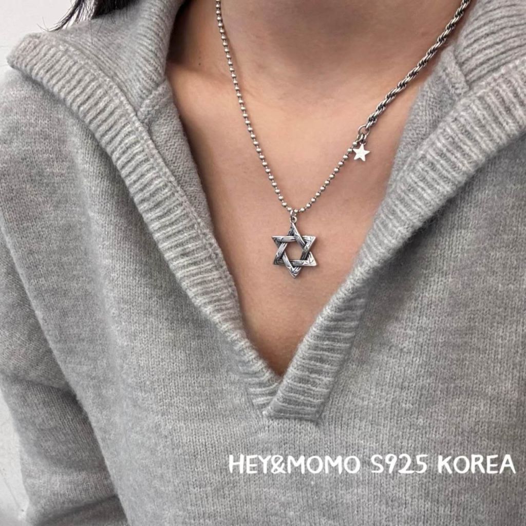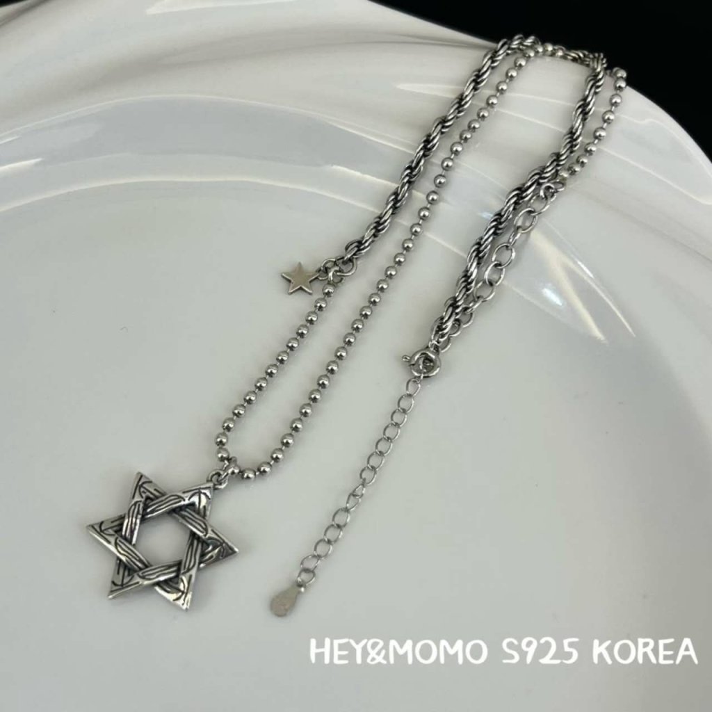HM624 韓國 🇰🇷 925銀 重工六芒星 AB 拼接鏈條項鍊45CM $799