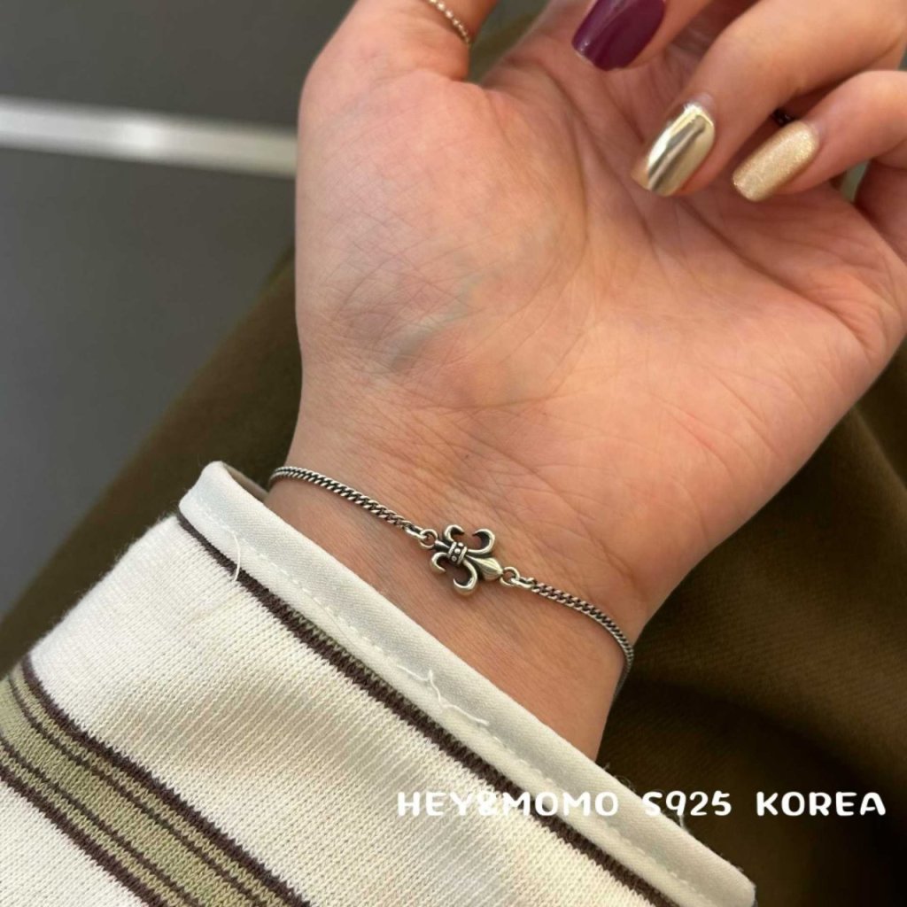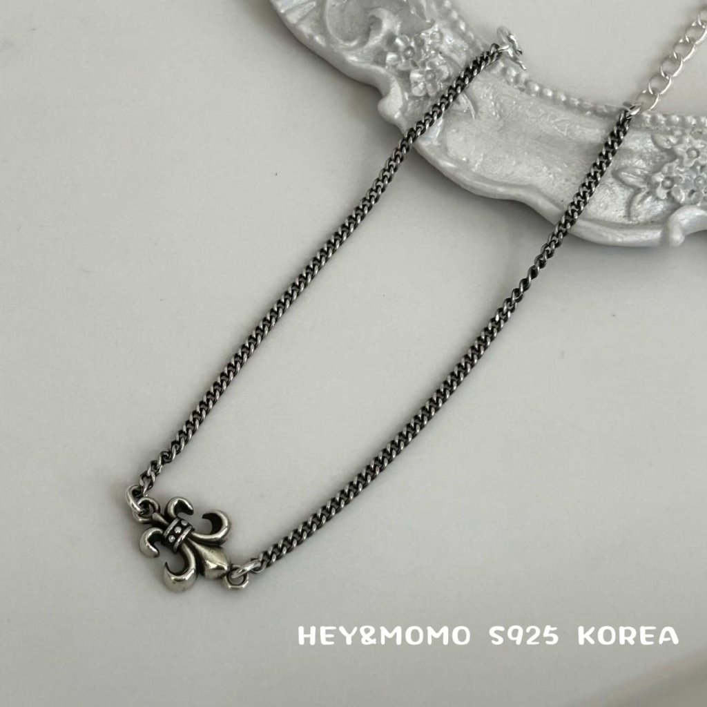 主頁 HM631 韓國 🇰🇷 925銀 復古做舊坦克鏈拼接克羅心鳶尾花手鍊 $239