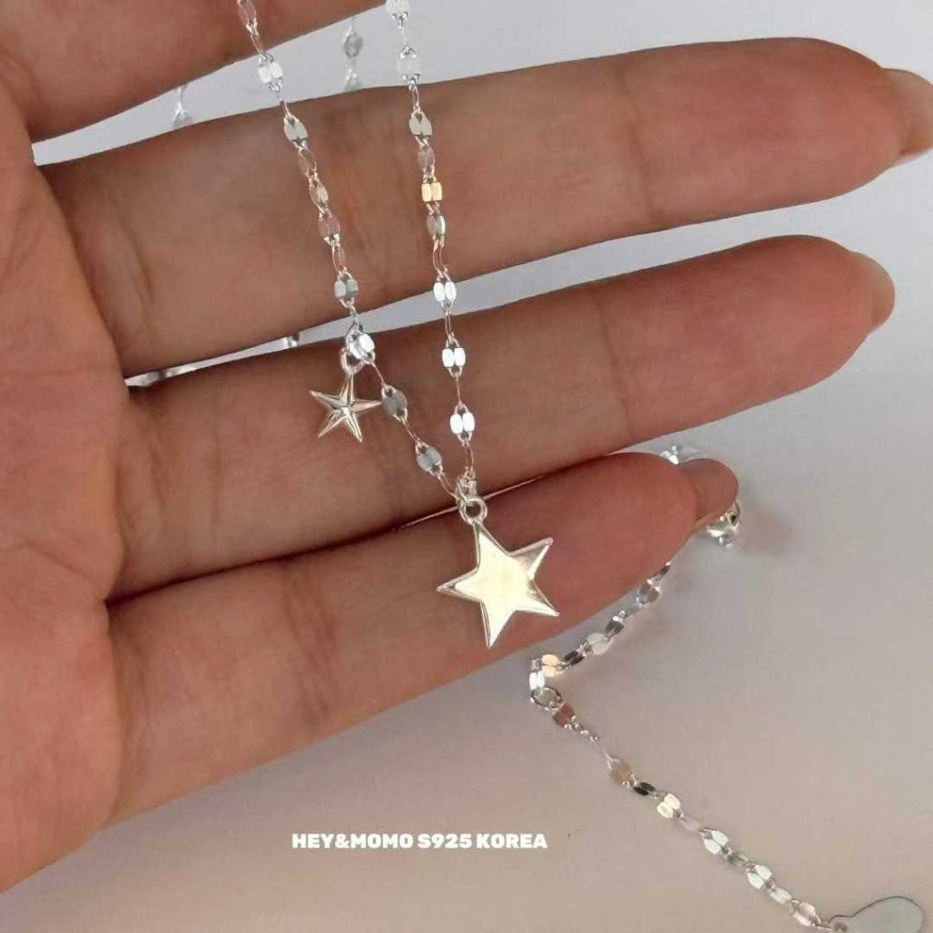 主頁 HM634 韓國 🇰🇷 925銀 亮白銀切割鏈條星星拼接項鍊40CM+5CM $189