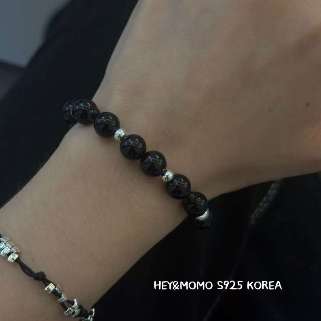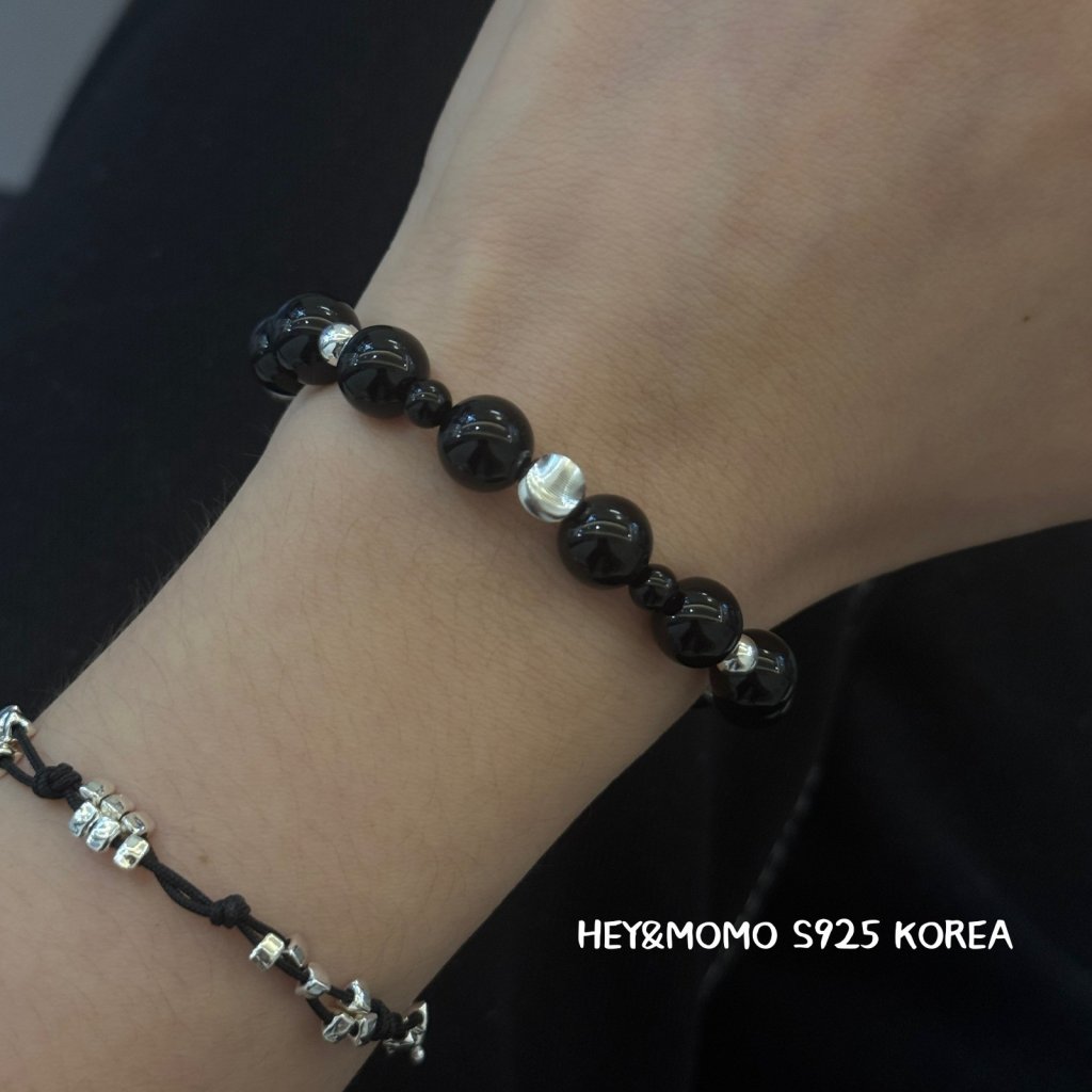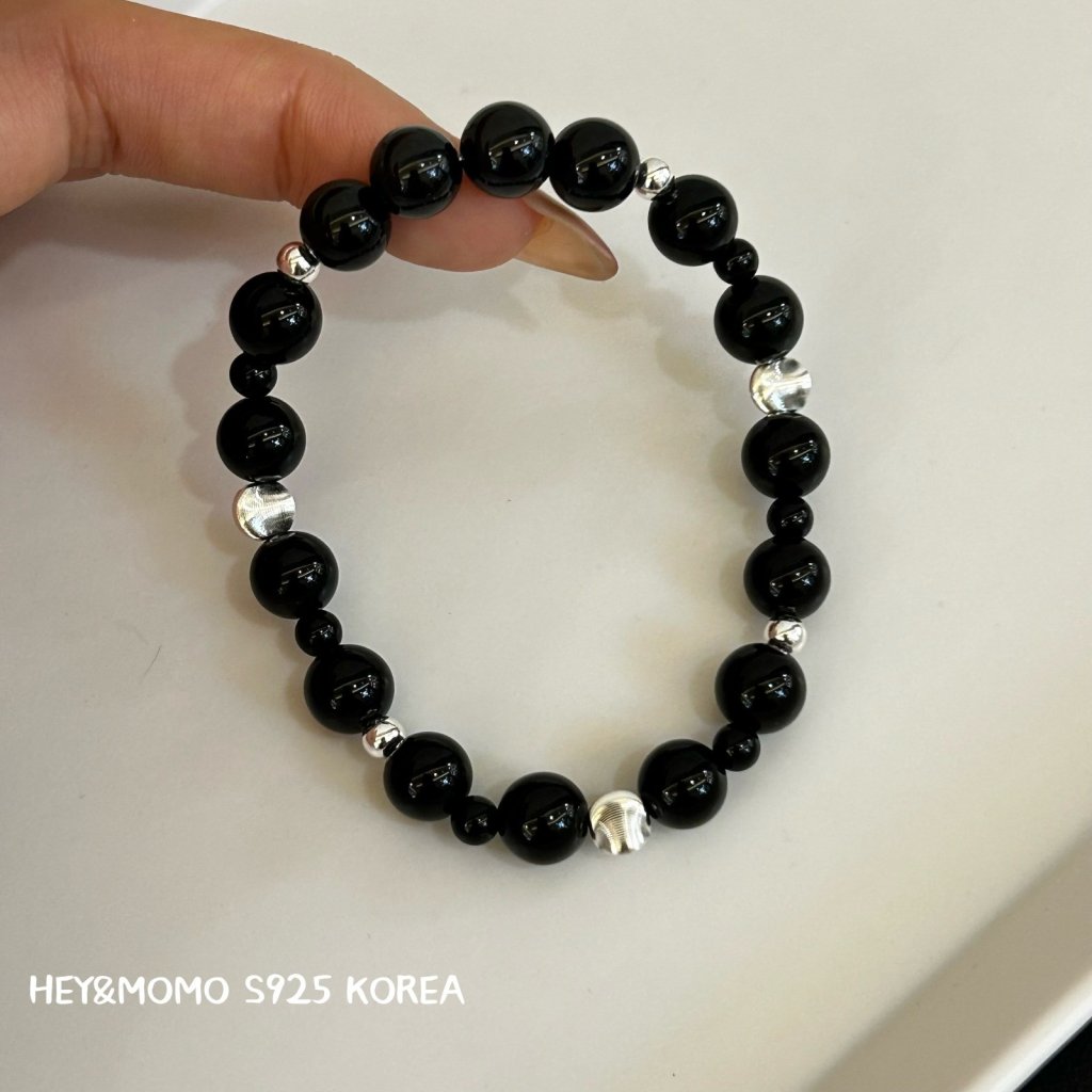 HM647 韓國 🇰🇷 925銀 獨家款 黑瑪瑙拉絲銀球手鍊 小、大 $169