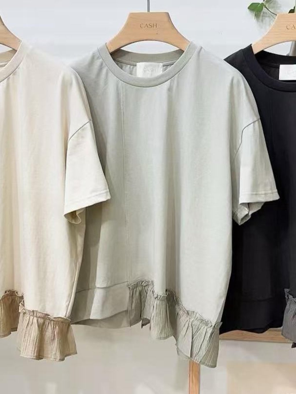 CH94 韓國 🇰🇷 CASH 棉拼天絲下擺Ruffle Top $219 米、綠、灰 長23寸、總闊48寸