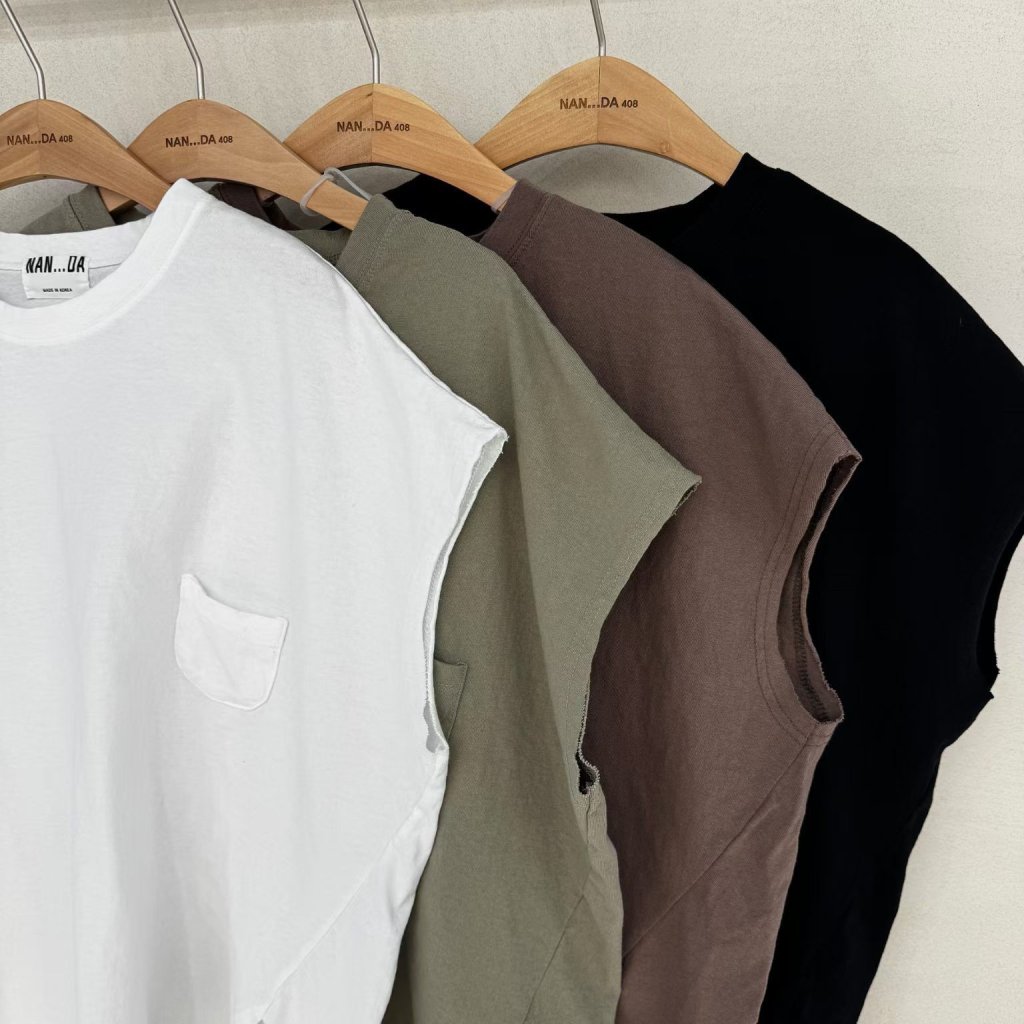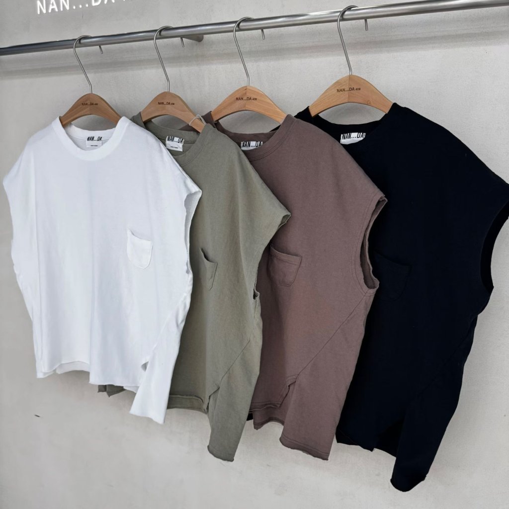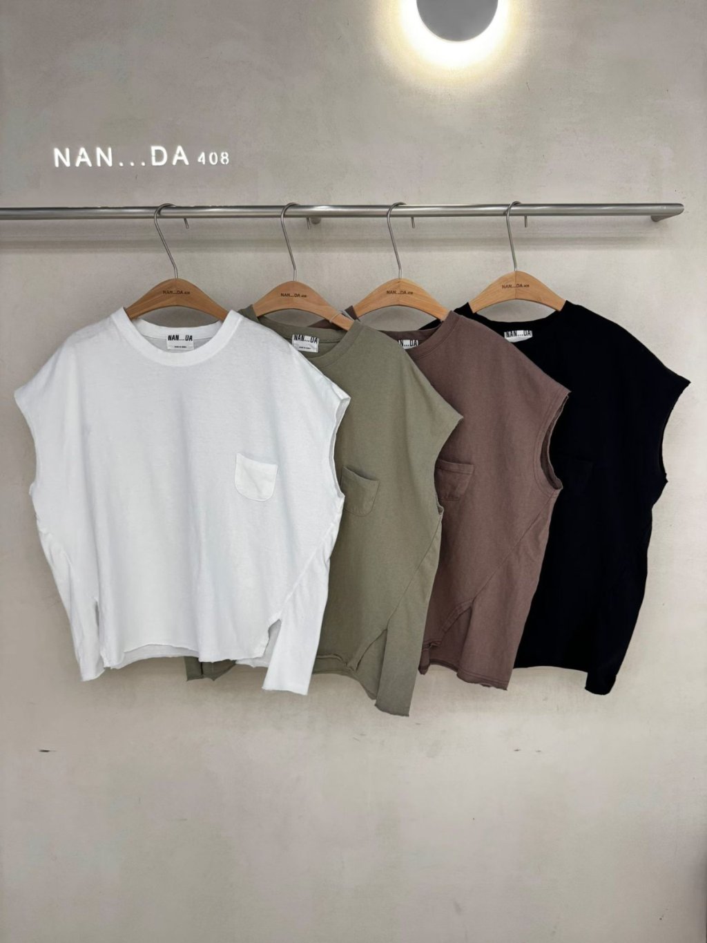 NN01 韓國 🇰🇷 NAN…DA 左胸小袋開叉腳背心Top $139 白、綠、啡、黑 長24寸、總闊48寸